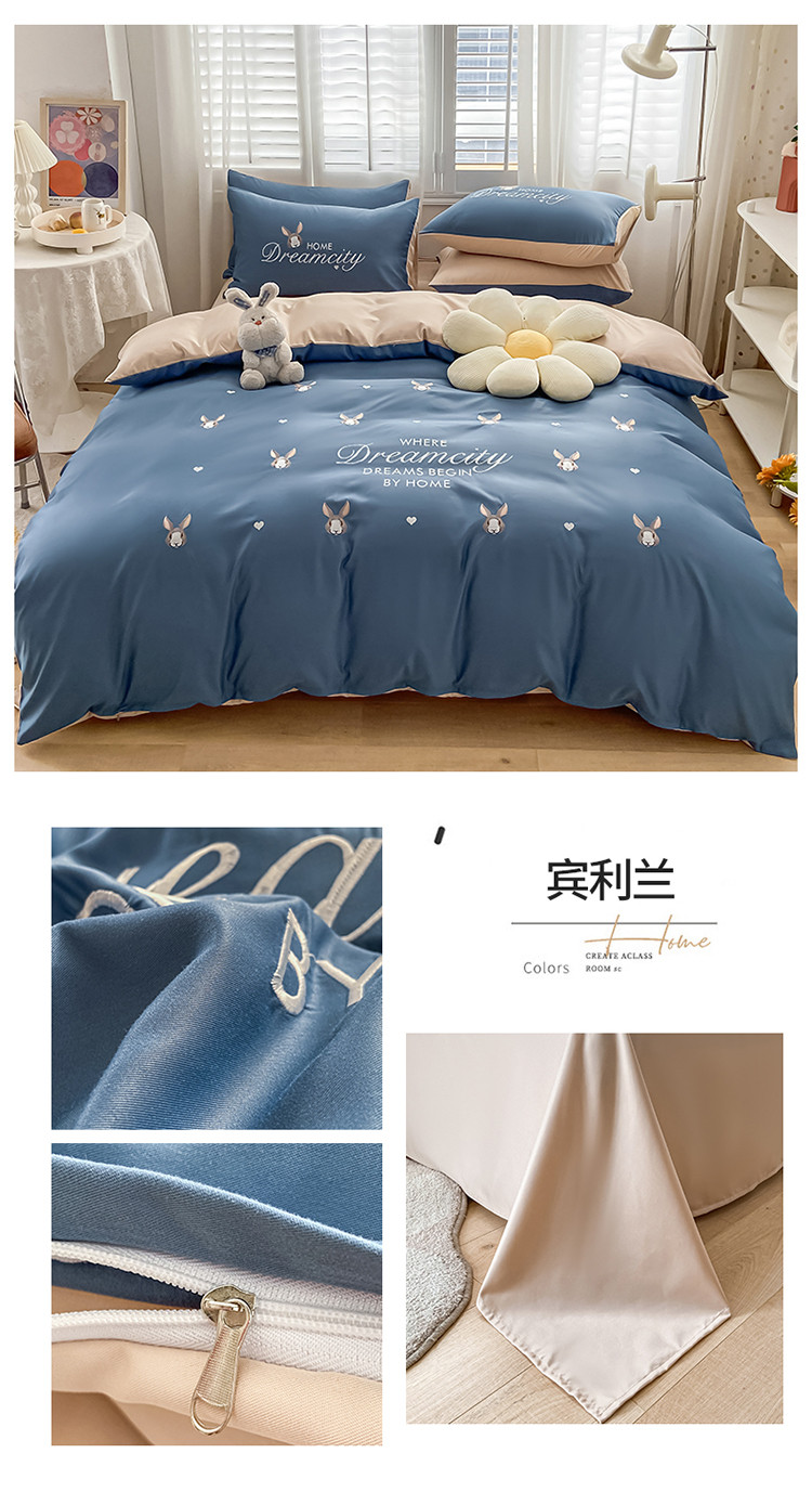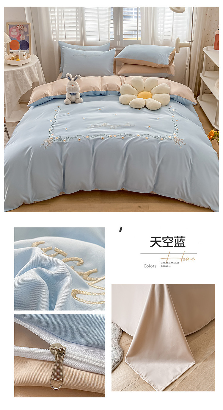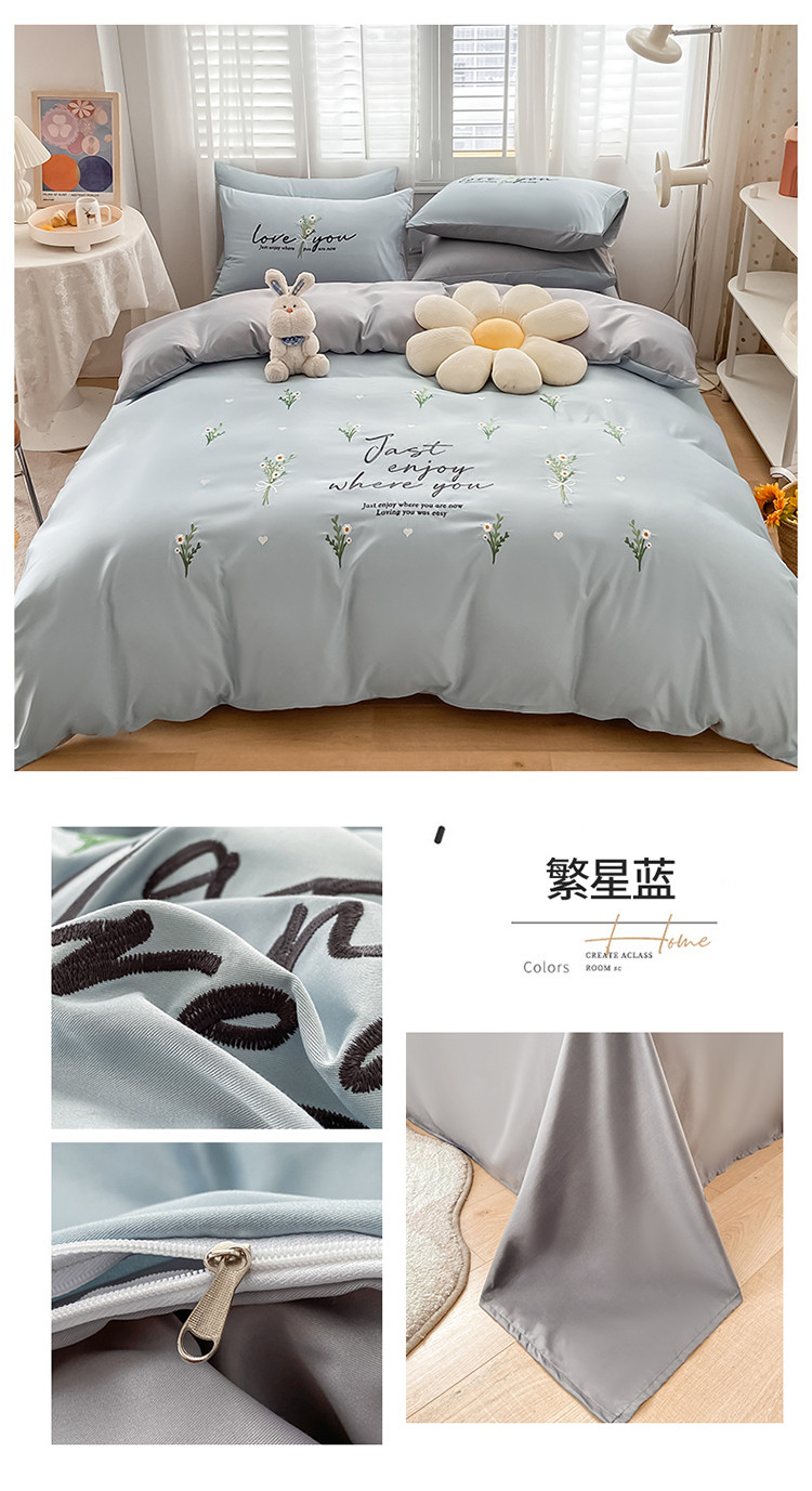 眠帛家居 2020全棉绣花小清新四件套 伊凌浅石蓝,伊凌浅石蓝