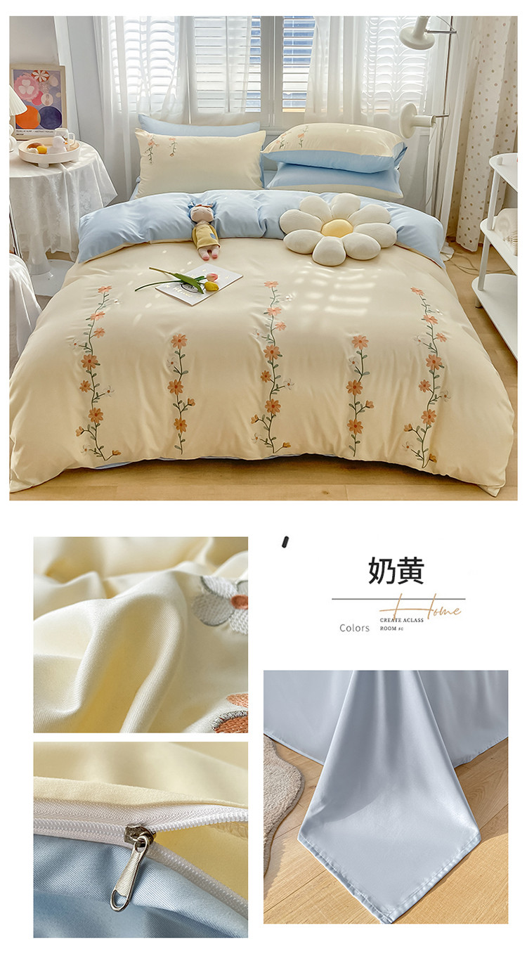 总眠帛家居2022新品60支兰精天丝气质轻奢绣花四件套-盛夏,盛夏-粉,盛夏-蓝,盛夏-绿