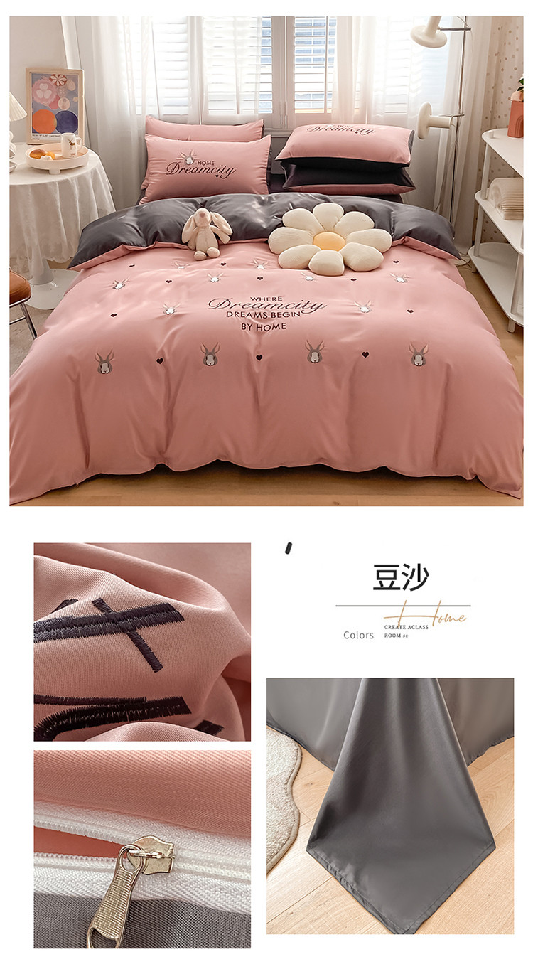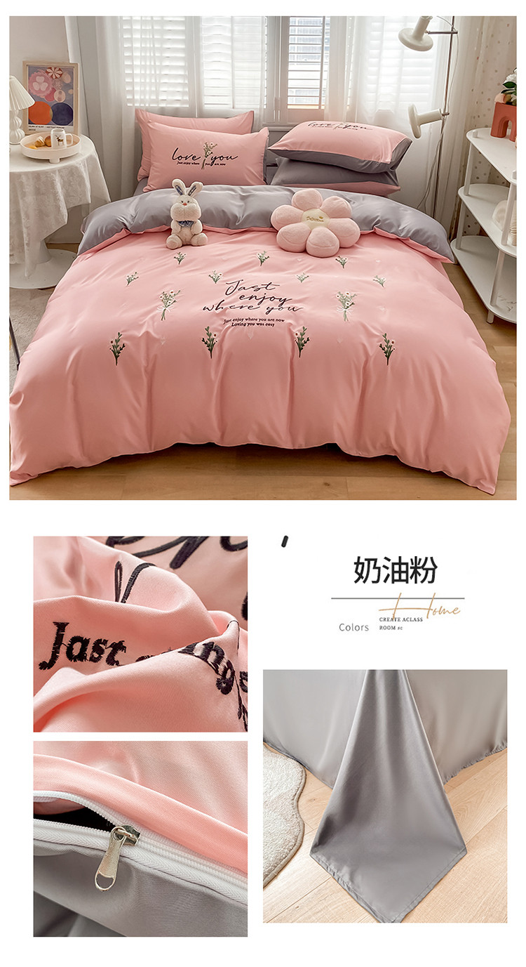 (总)眠帛 2022新款水洗棉贝壳绣边四件套,豆沙-灰,繁星兰-灰,奶黄-焦糖,奶黄-天空蓝,奶油粉-奶黄,浅灰-奶黄,天空蓝-奶黄
