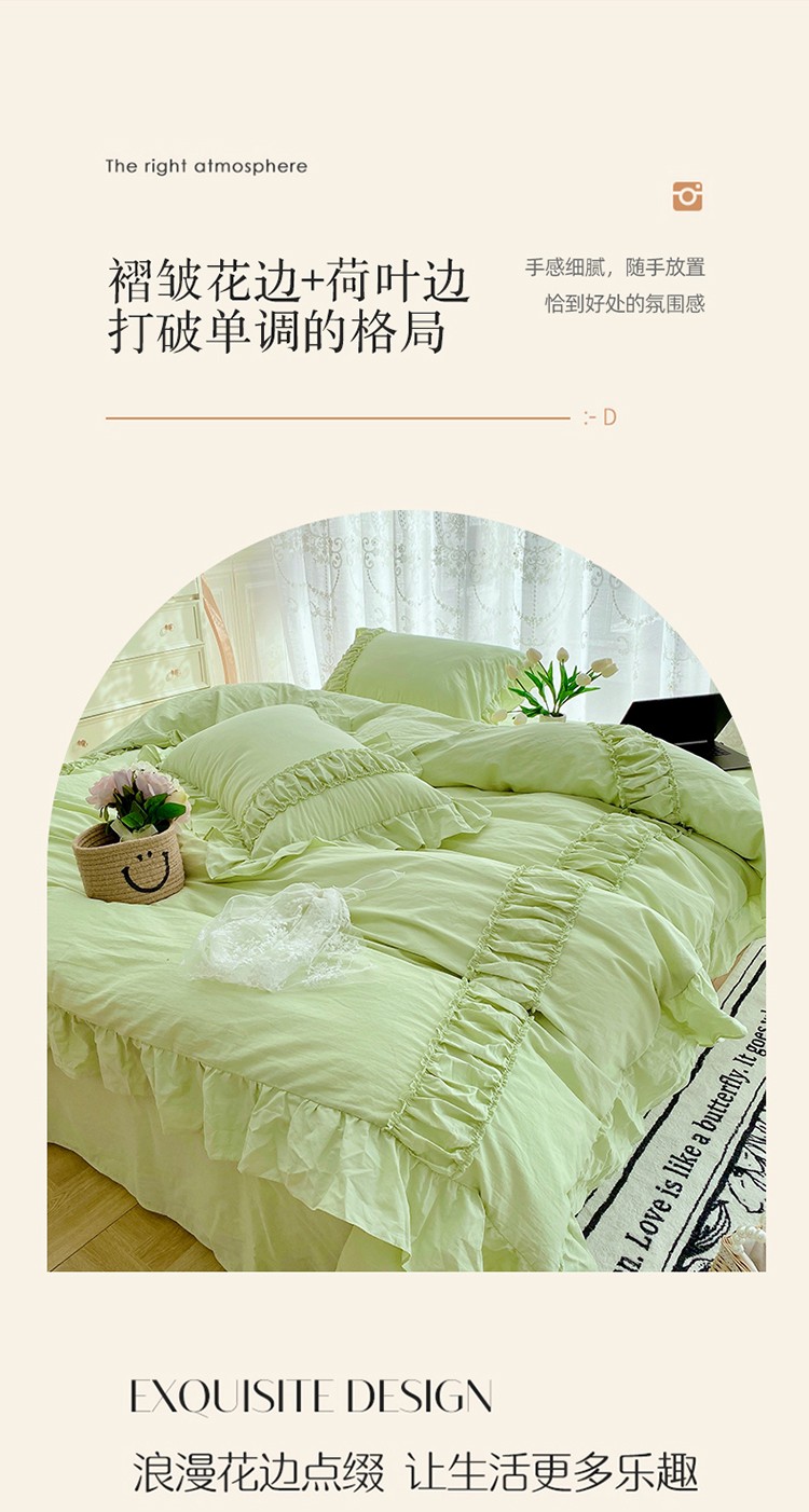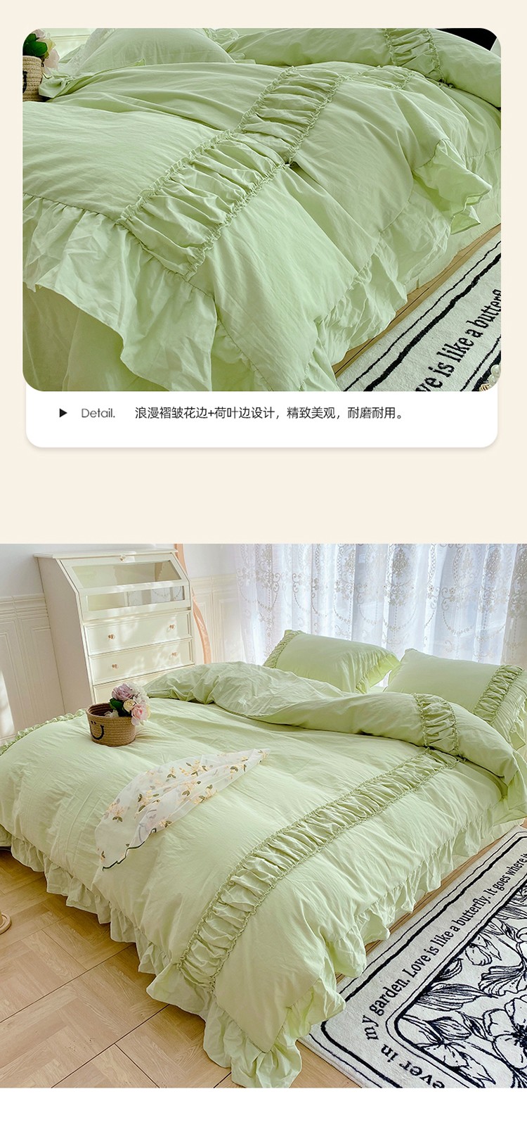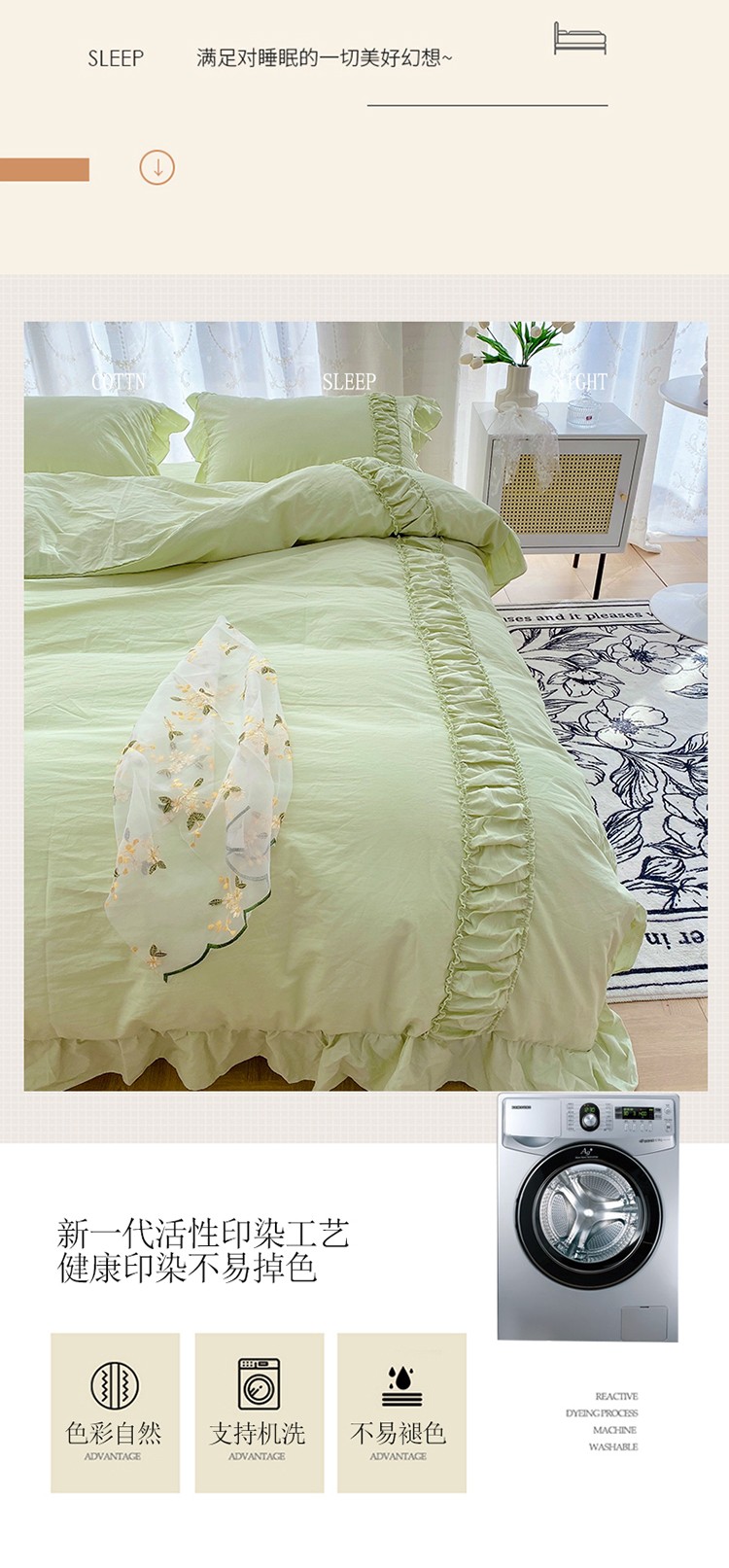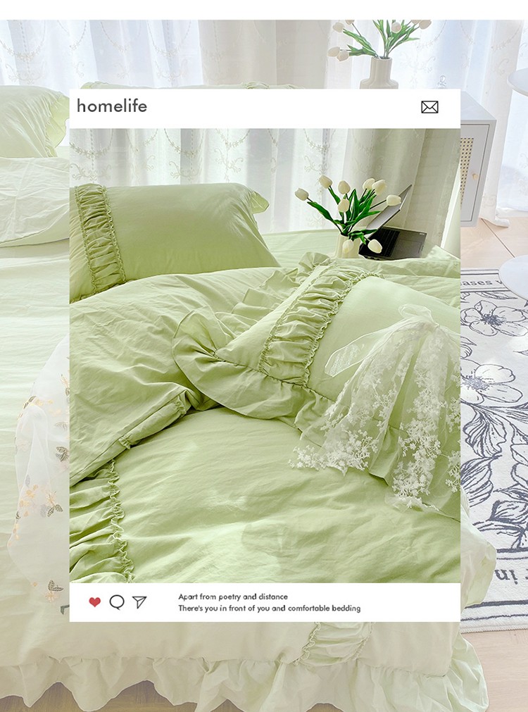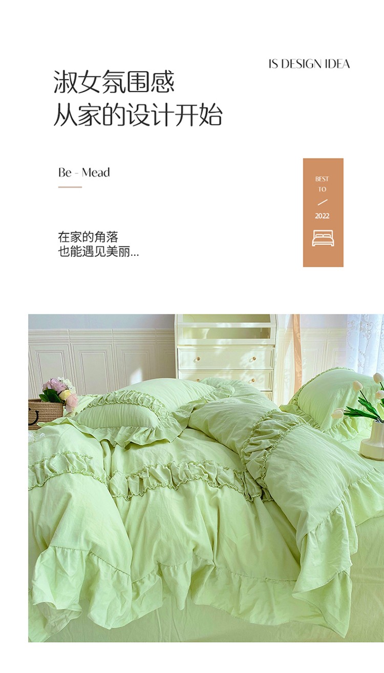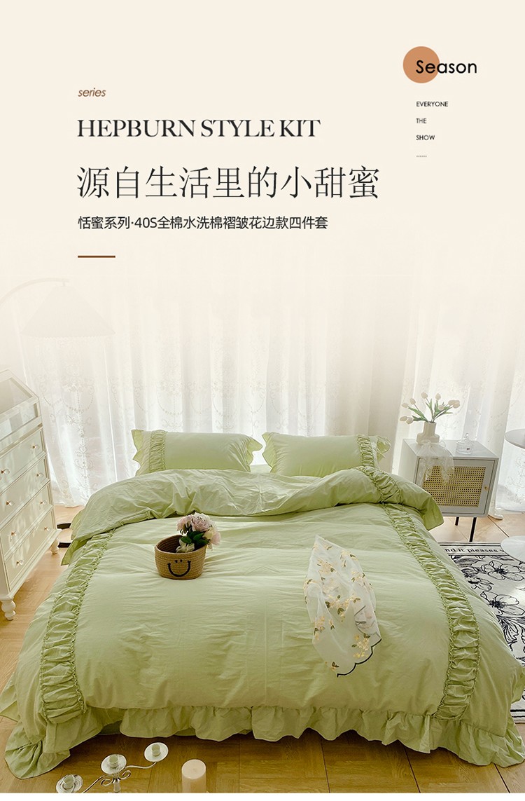 玛奇朵新款40s全棉水洗棉花边四件套-恬蜜系列实拍图恬蜜-绿
