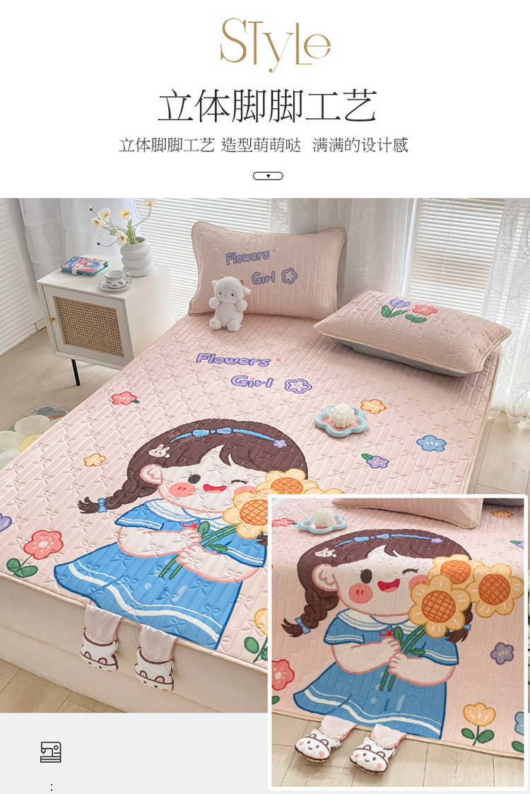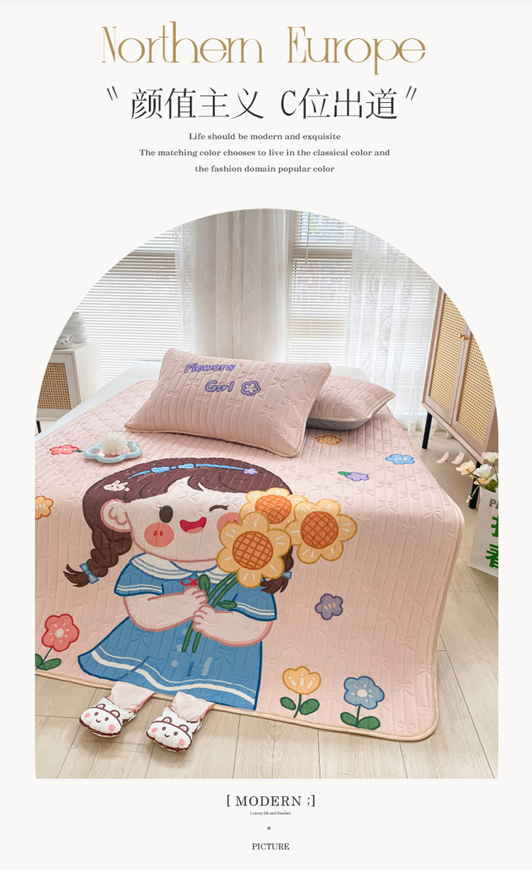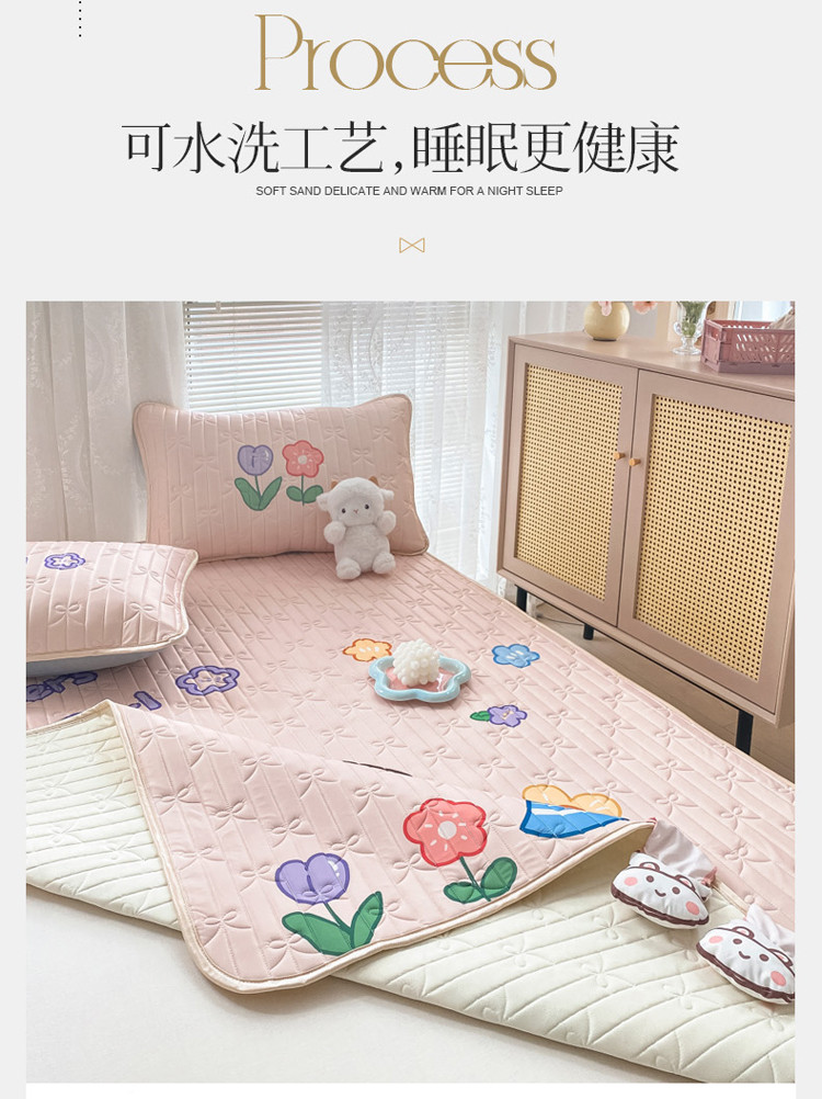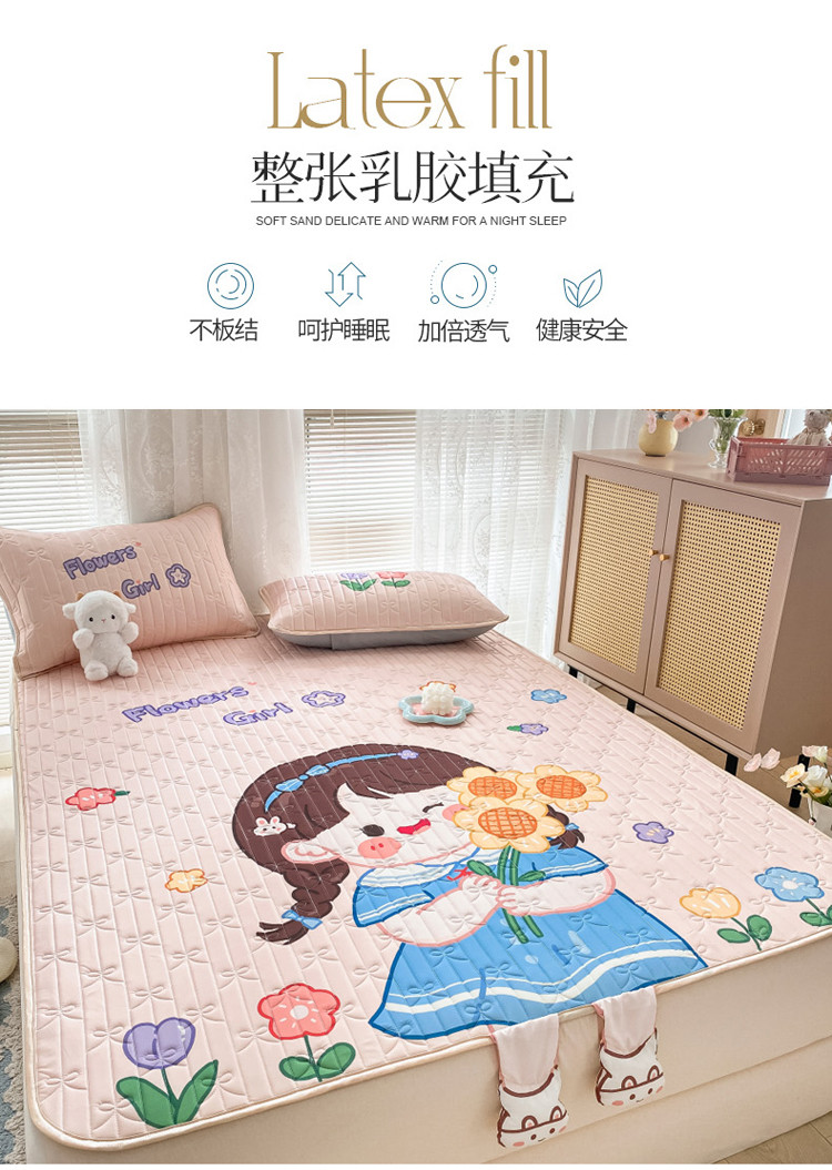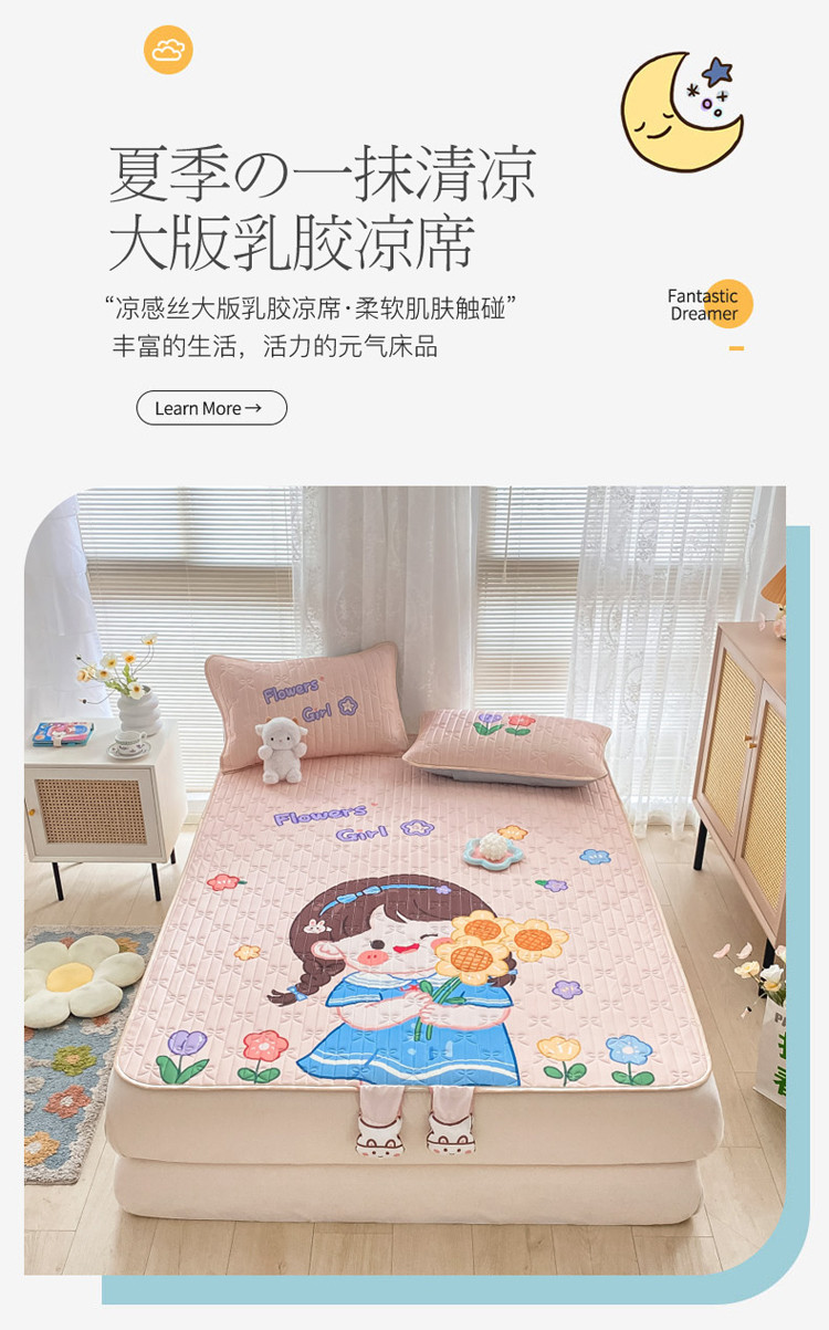 商品名称:沐慕 2022新款工艺款大版乳胶凉席 花花女孩-粉