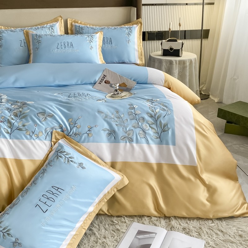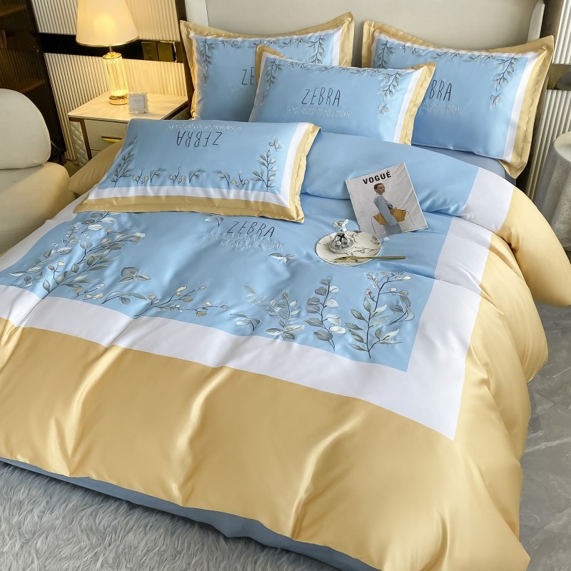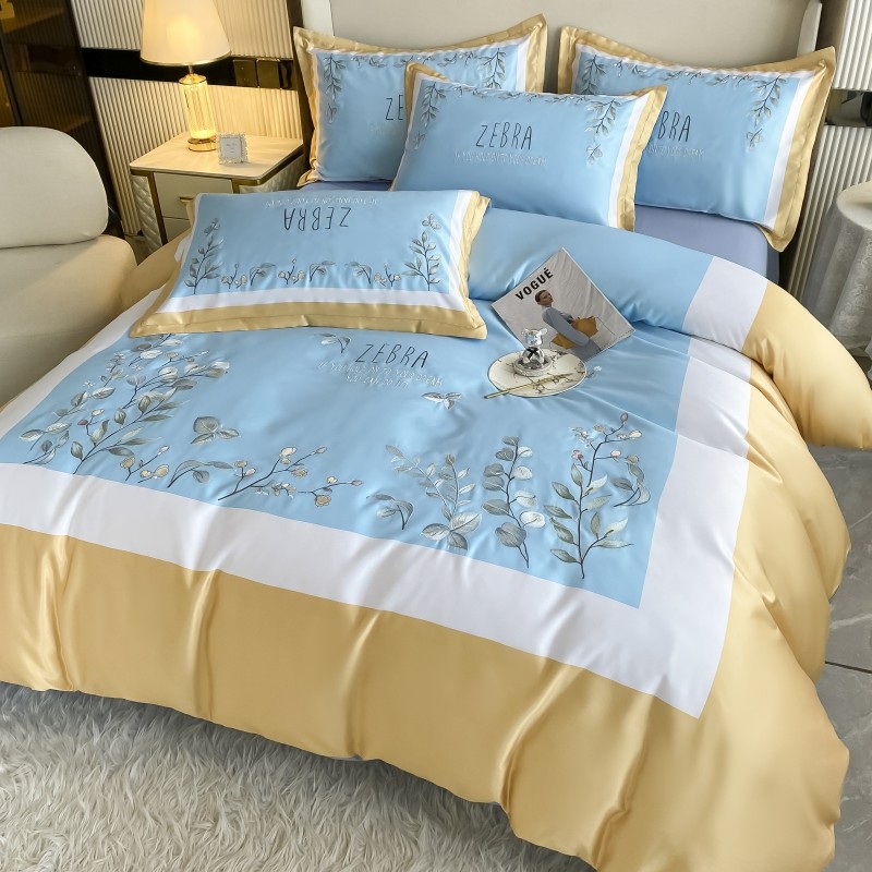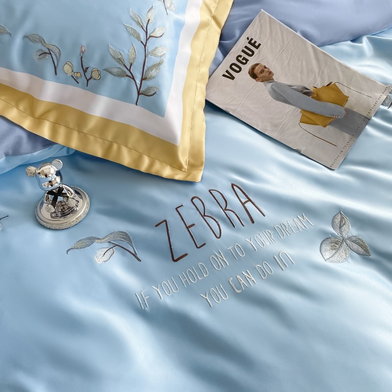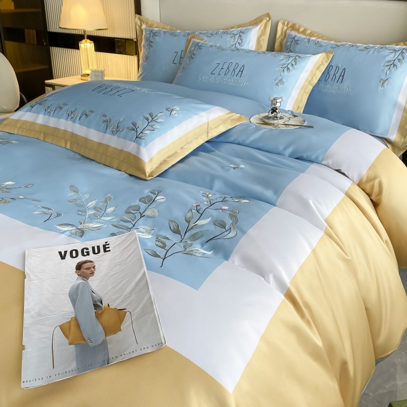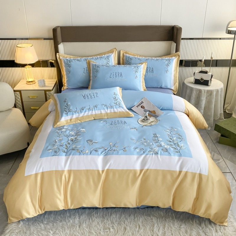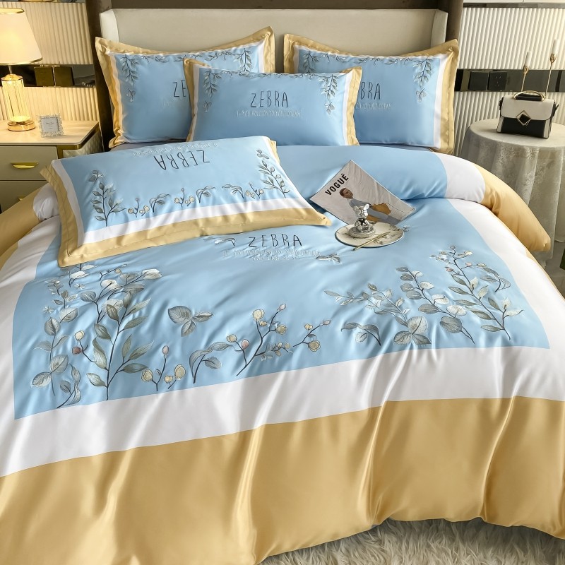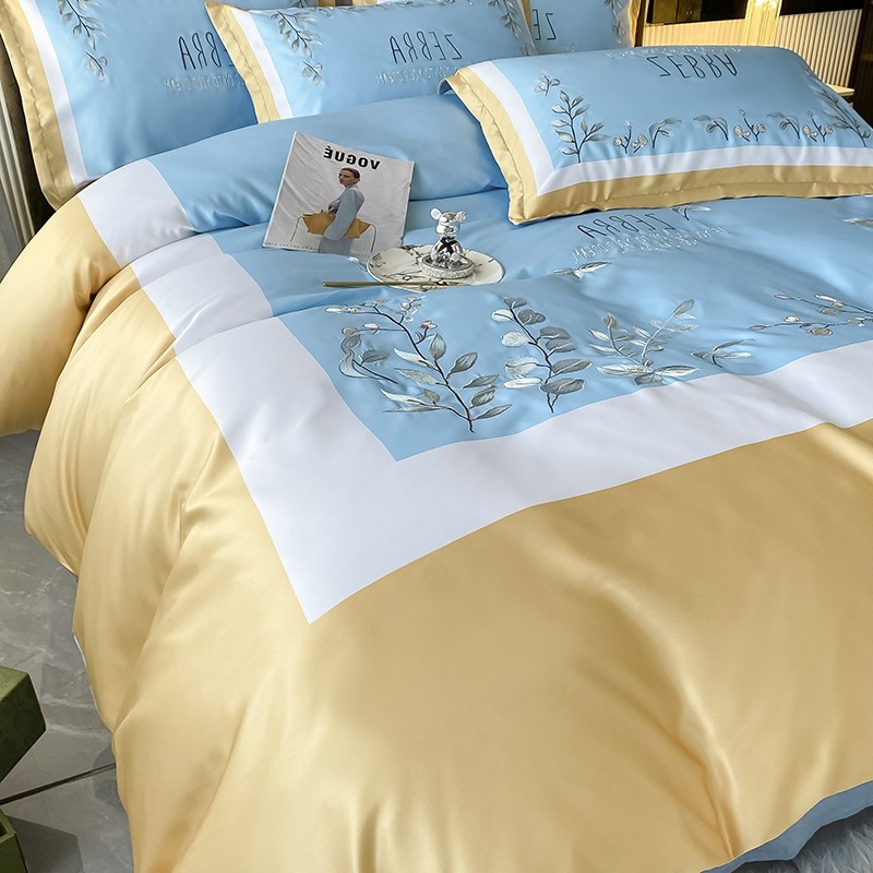 (总)博纳家纺 2025新款亲服棉宽边高级简奢款绣花四件套-盛世年华,宾利蓝,繁星蓝,粉玉,高级灰,香槟