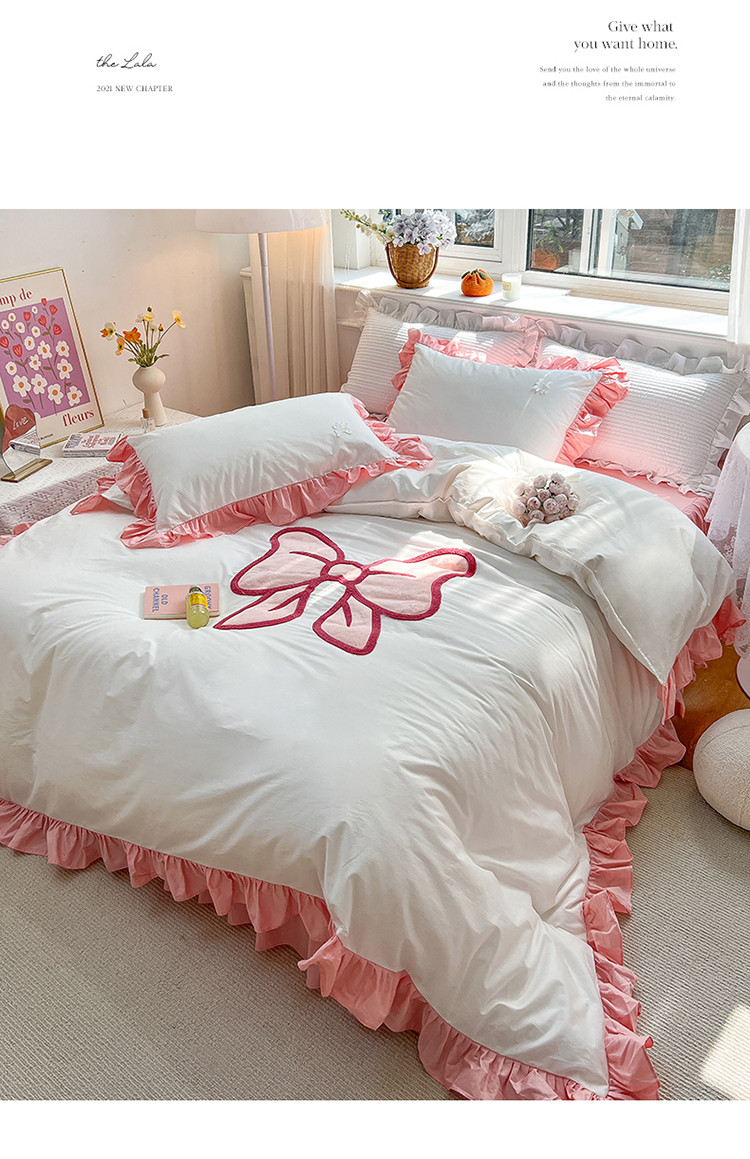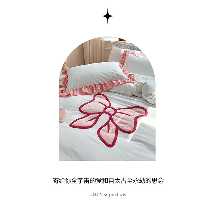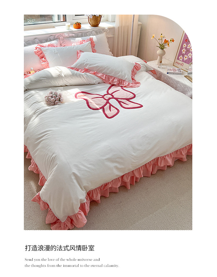婳庭家居 2023新款全棉13376贴布绣蝴蝶结四件套 蝴蝶结白