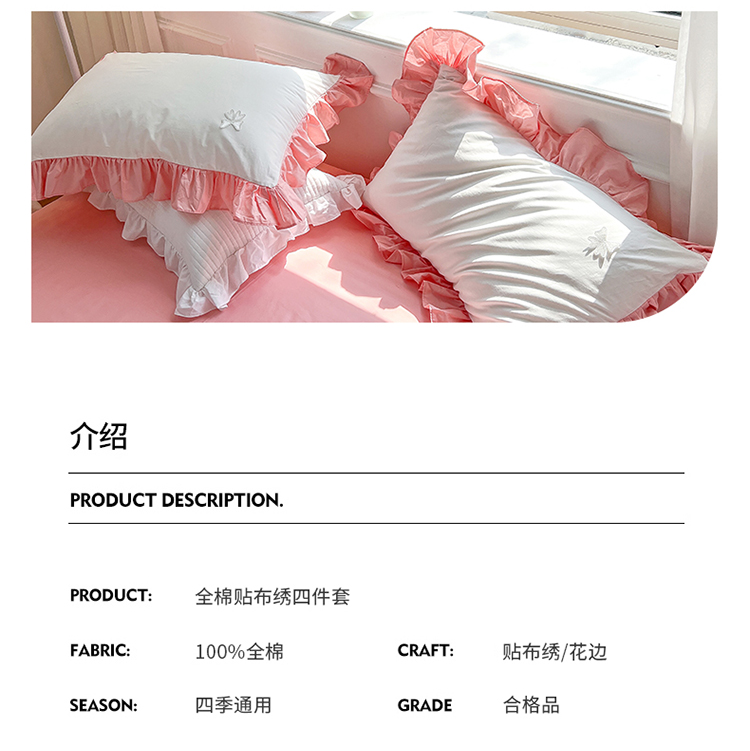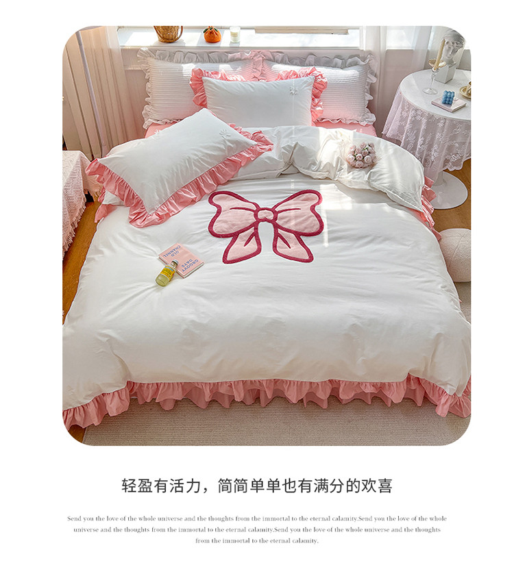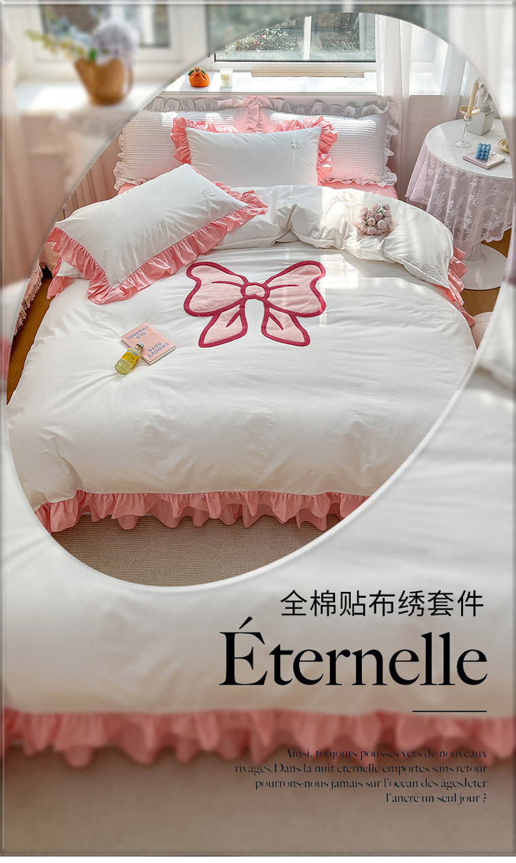 商品名称:婳庭家居 2023新款全棉13376贴布绣蝴蝶结四件套 蝴蝶结白