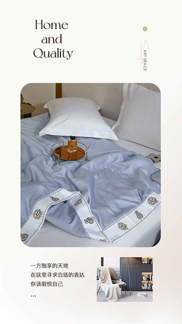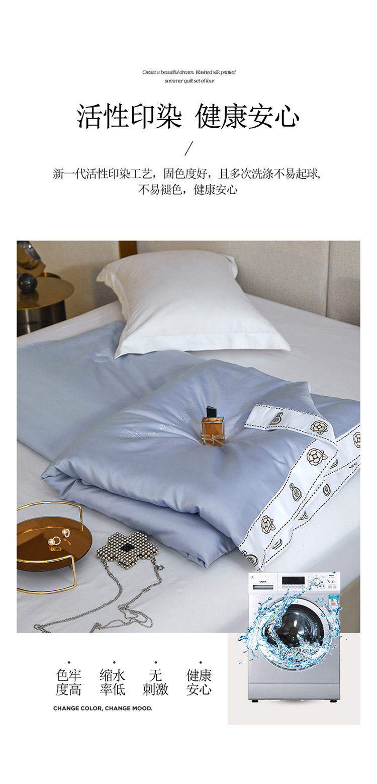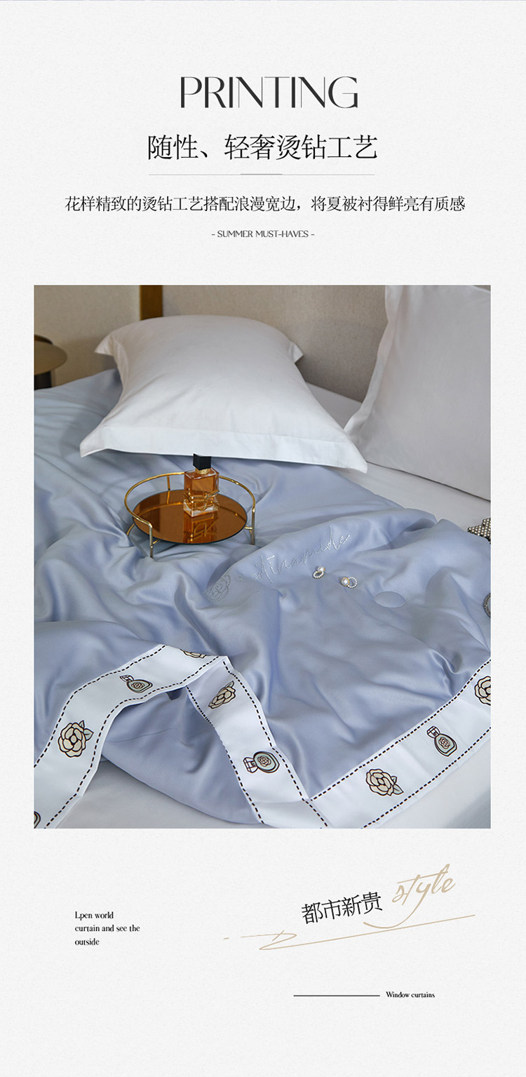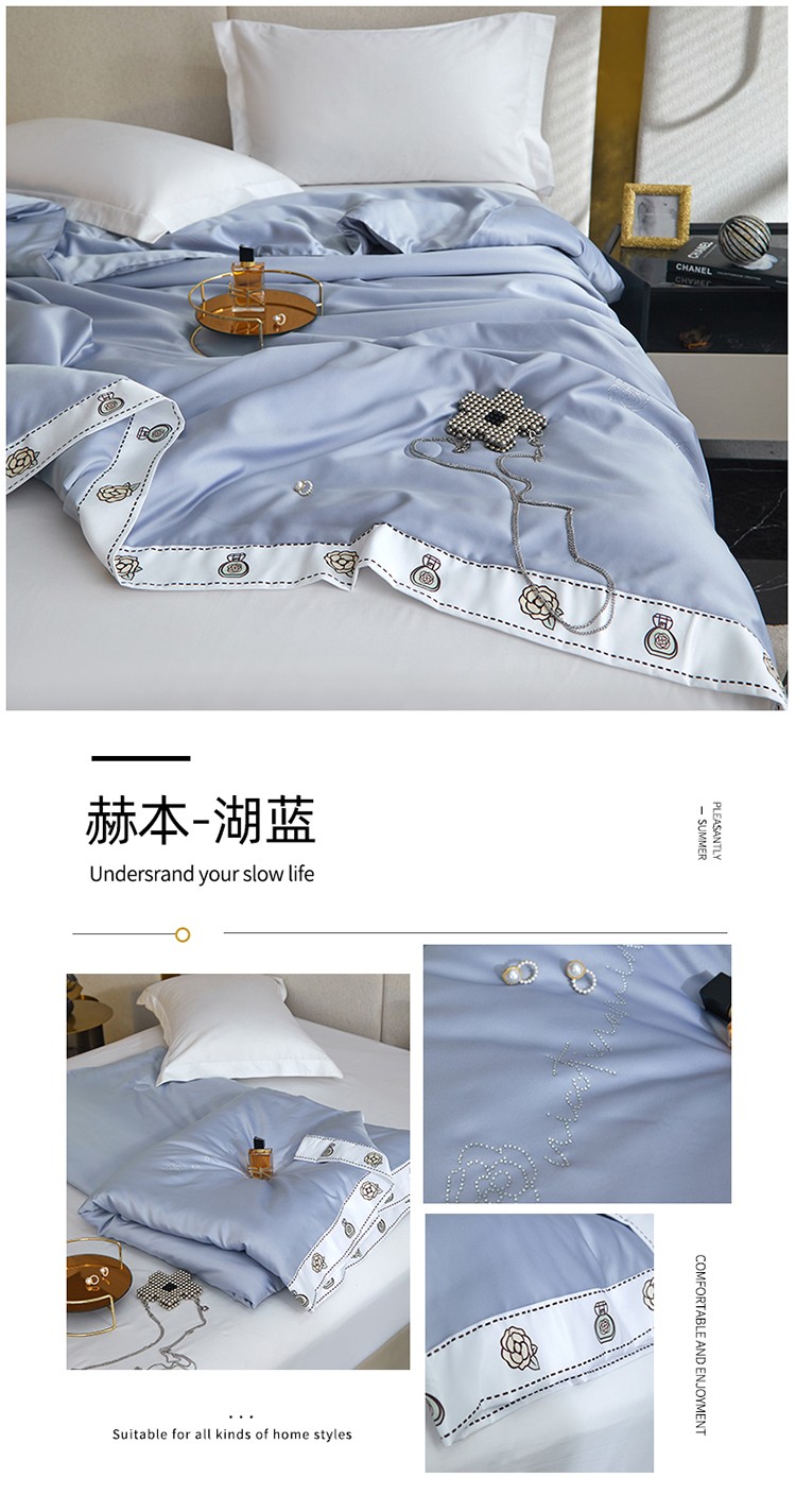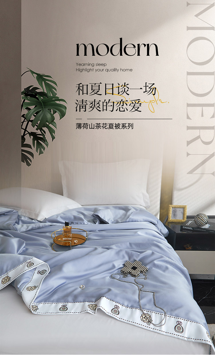 凡客家居2022新款水洗天丝薄荷纤维山茶花赫本夏被赫本-湖蓝