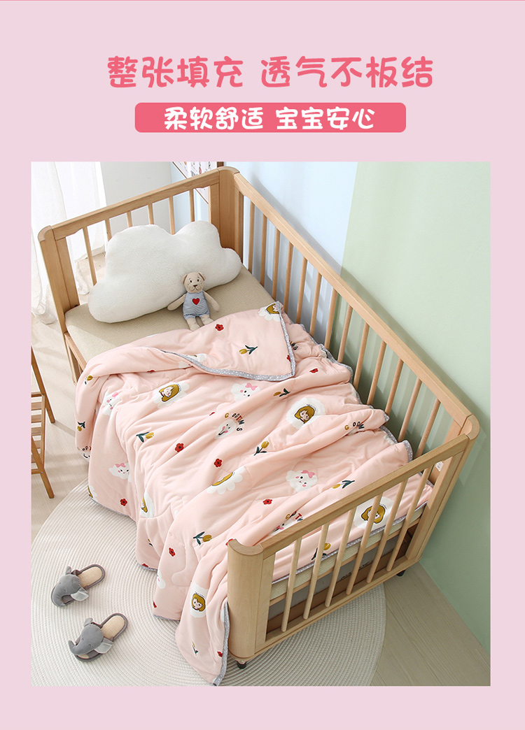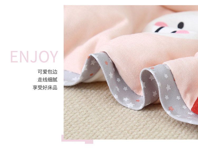 (总)喜多兔儿童家纺 2025春夏新款小软萌贴布绣纱布被,粉色软萌小兔,卡其色软萌小熊,蓝色软萌小象,绿色软萌恐龙,组合图仅供展示