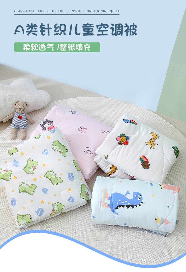 (总)喜多兔儿童家纺 2025新款小惊喜儿童蚕丝蛋白天丝抗菌夏凉被,粉色礼貌小鸭,粉色围裙小兔宝,黄色多彩小狗,黄色画画小猫,灰蓝色活动熊猫,灰蓝色运动小狮子,卡其色勤劳小马,卡其色围兜小熊,绿色萌萌恐龙,绿色微笑小猴