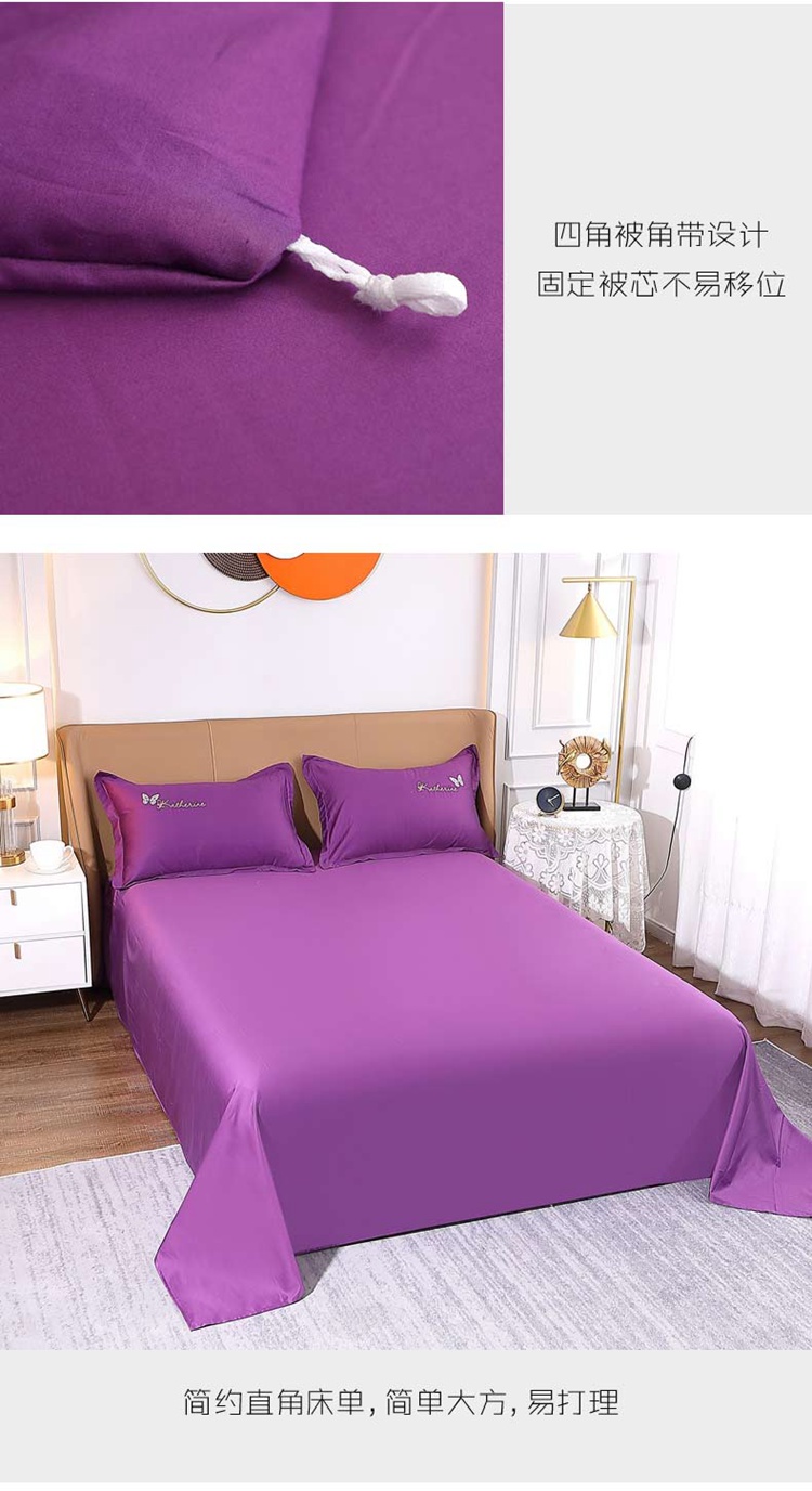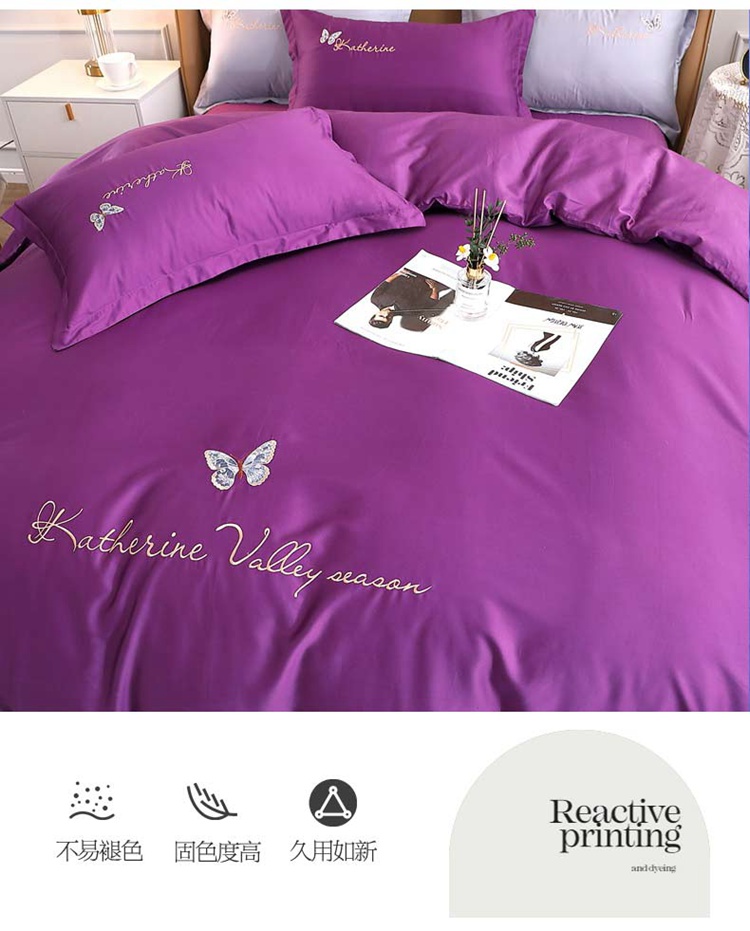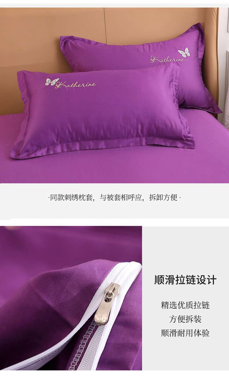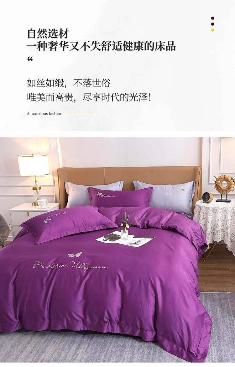 晶缦家纺 2022全棉双股50支双股贡缎长绒棉绣花四件套-蝶舞 高雅紫