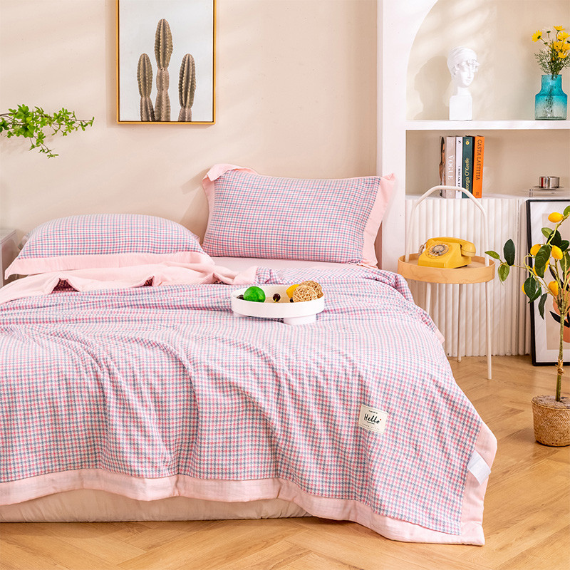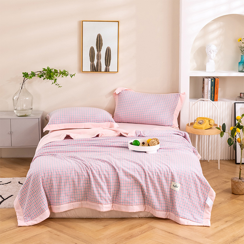 简色坊 2023新款全棉色织小提花夏凉被小提花 梵西-灰粉
