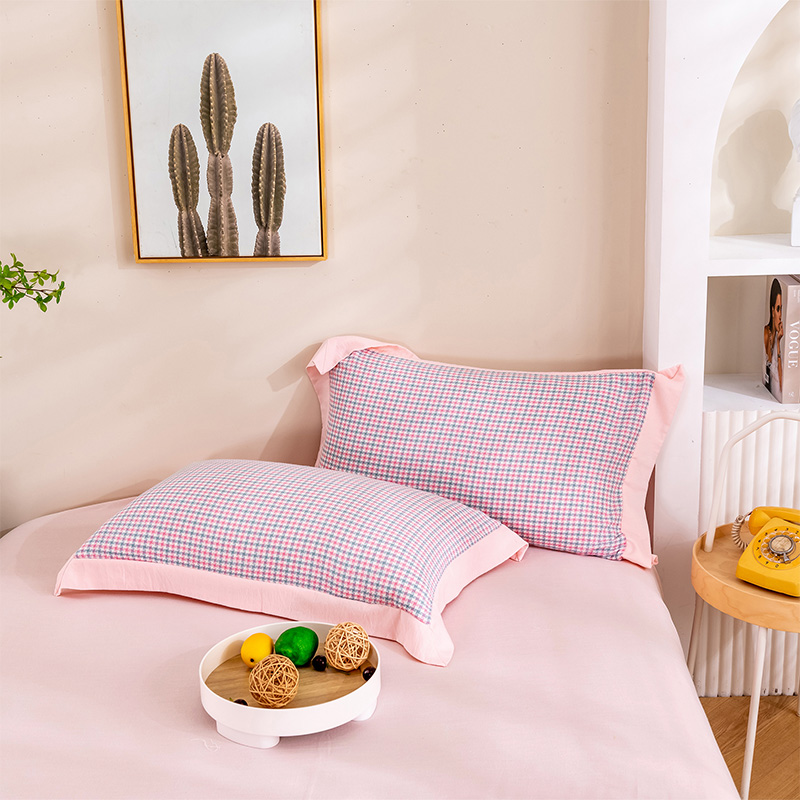 简色坊 2023新款全棉水洗棉四件套优雅格调-蜜粉大格,优雅格调-蜜粉大格