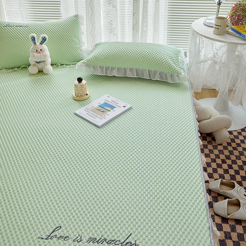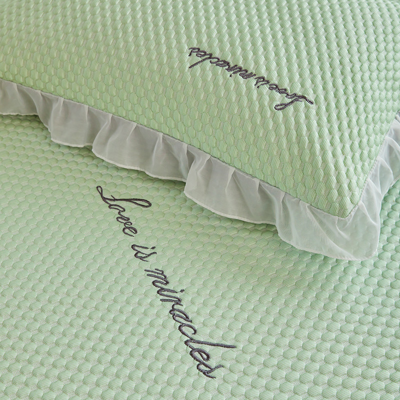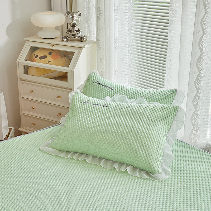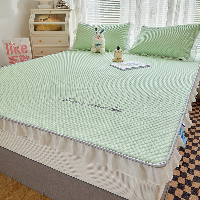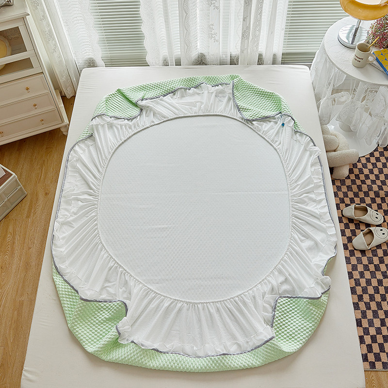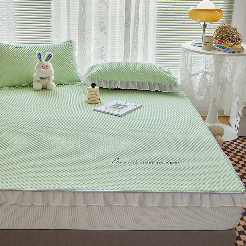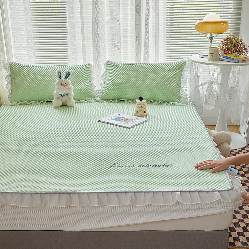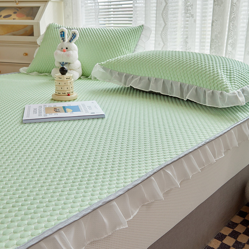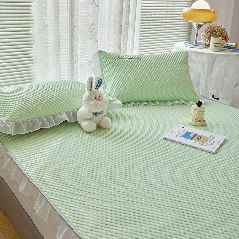 商品名称:金丝鸟 2022新款花边床笠款冰豆豆凉席 花边款浅草绿