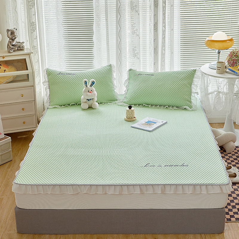 金丝鸟 2022新款花边床笠款冰豆豆凉席 花边款浅草绿