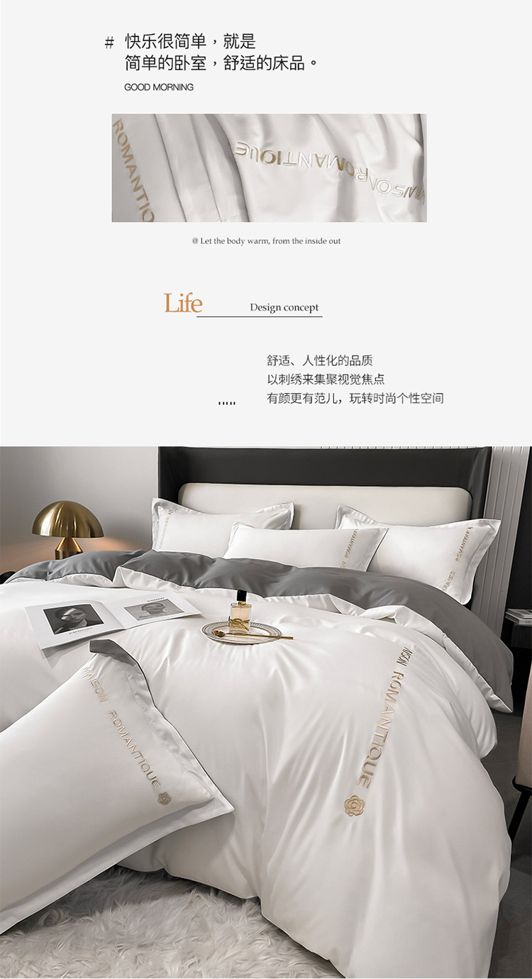 商品名称:欣晴 2023年新款亲肤水洗棉轻奢刺绣四件套 若梦-米灰