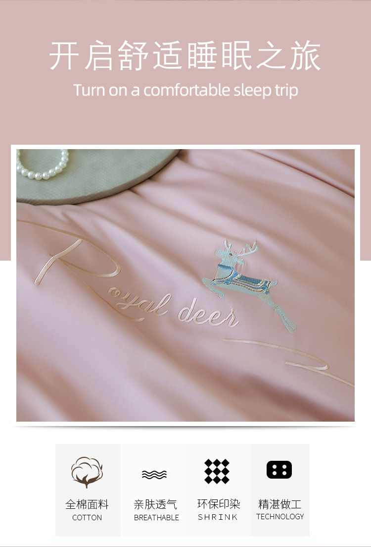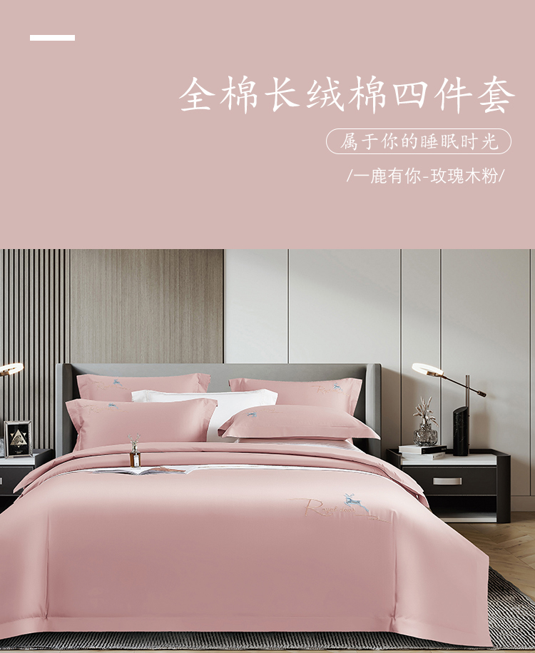 商品名称:芊寻家居 2024新款全棉长绒棉四件套 一鹿有你-玫瑰木粉