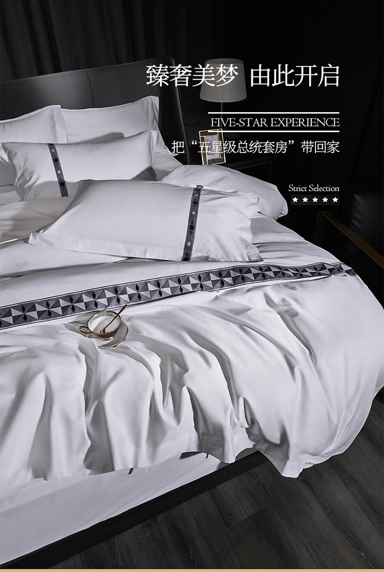 (总全棉 60s贡缎喷气绣花套件酒店四件套 宾馆套件民宿用品,典雅,浪漫,时尚