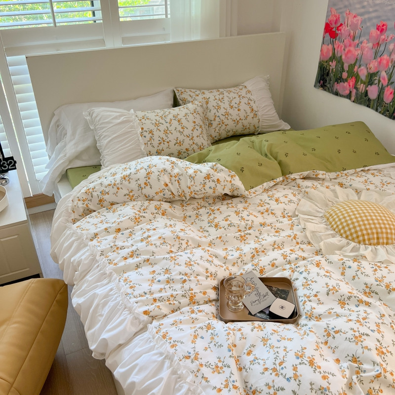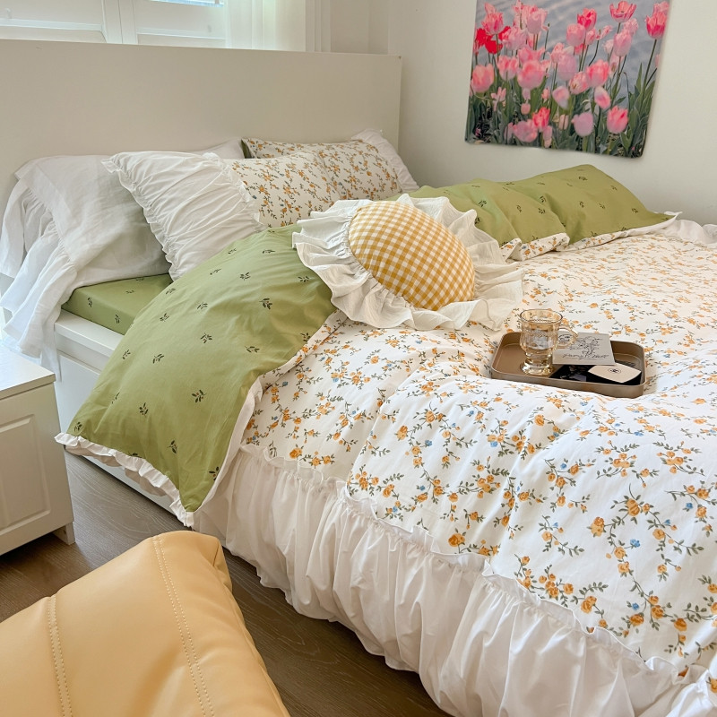 商品名称:顾里 2023新款法式甜美褶边全棉四件套-复古碎花系第一批 花西子