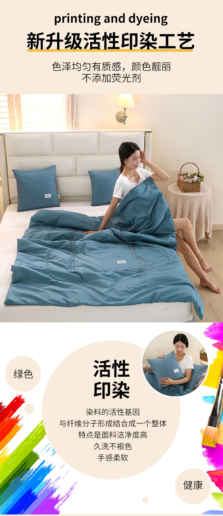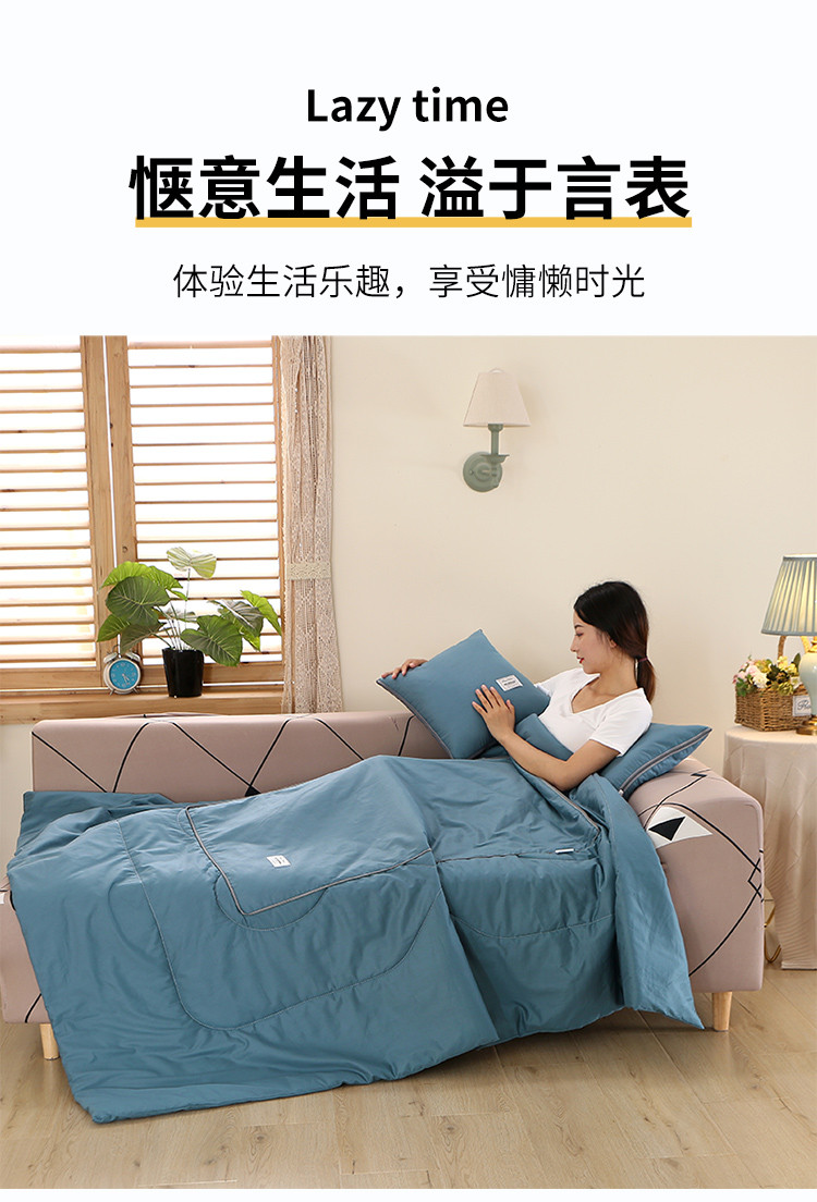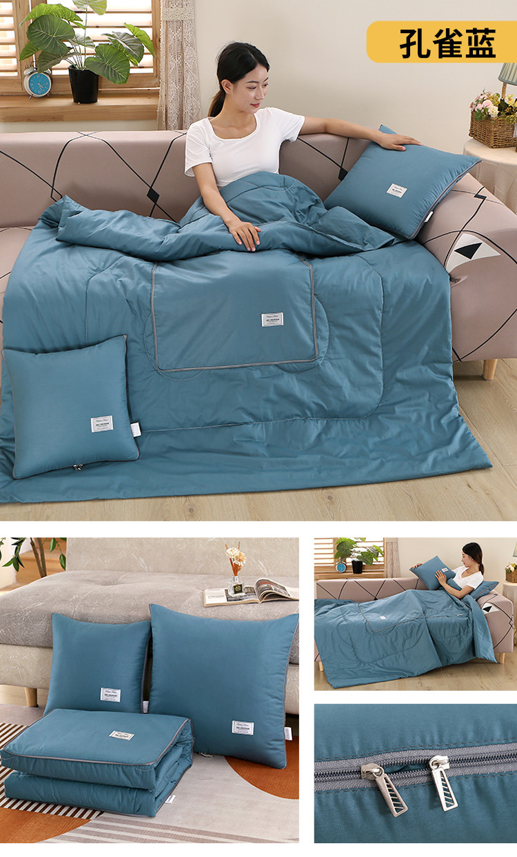 商品名称:照世家纺 2022新款13372全棉贴布绣系列抱枕被 孔雀蓝