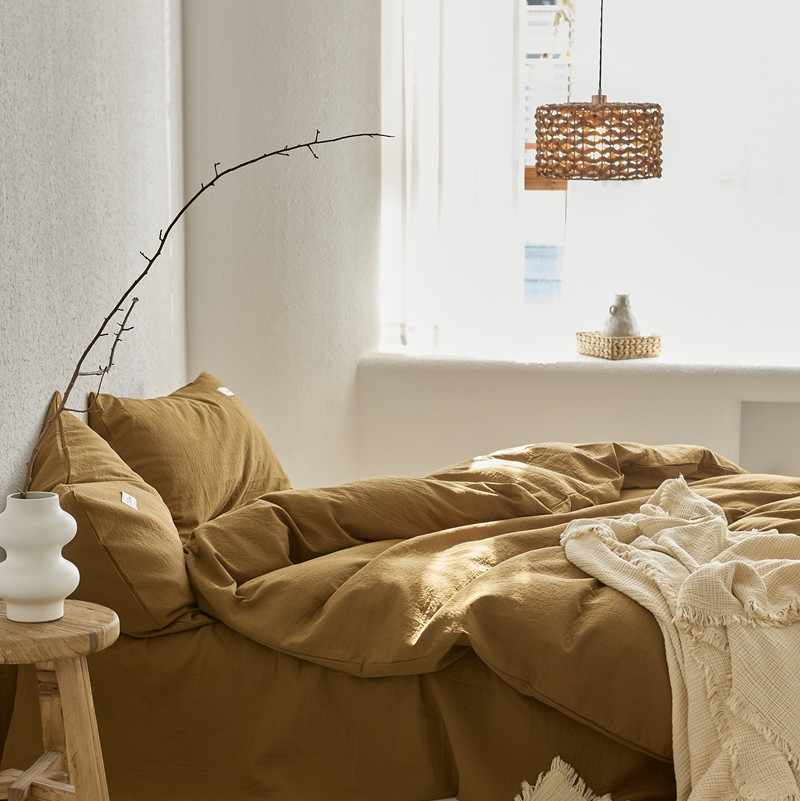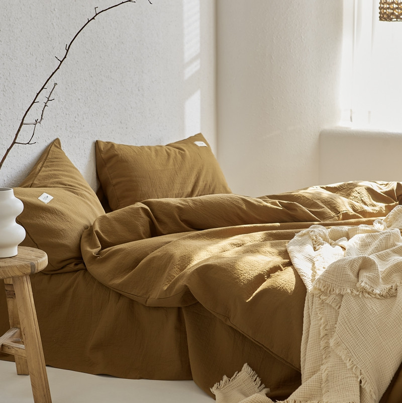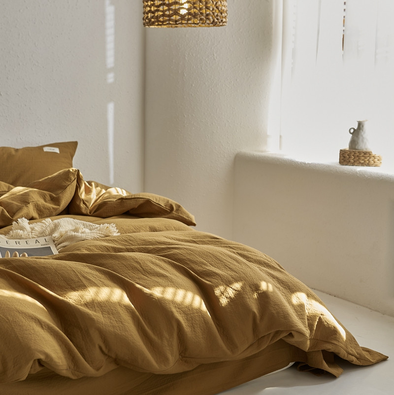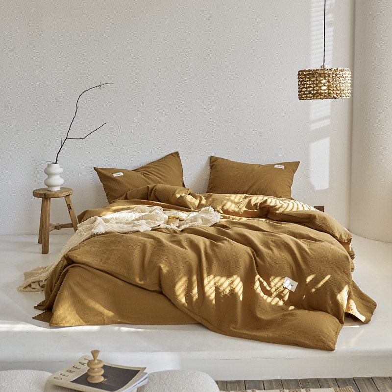 (总)简家居 2025新款高端轻奢亚麻棉四件套,兰亭序,日落-熔金