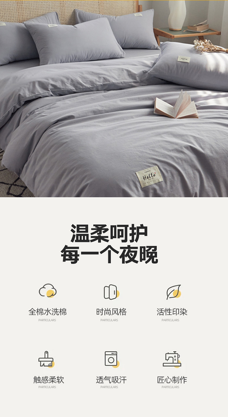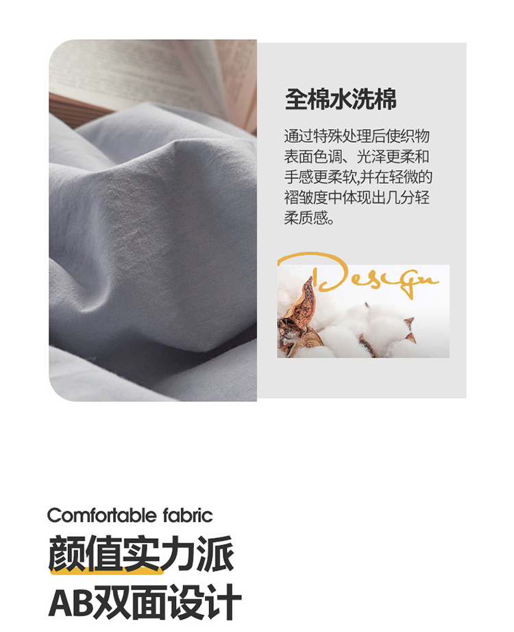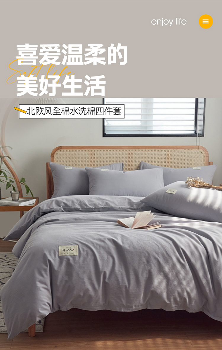 当前位置: 91家纺网 > 商品网购 > 床品套件 > 四件套 > 水洗棉四件套 > AB家纺 2022新款全棉水洗棉四件套 紫灰