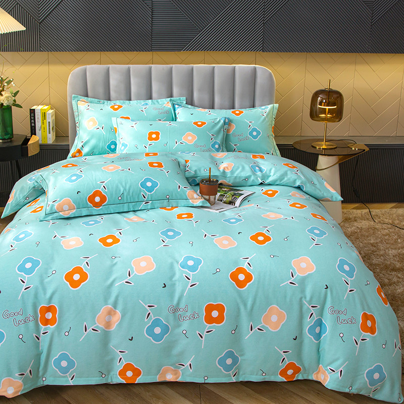 简冠家纺 2022新款全棉加厚生态磨毛系列单被套 甜心花语-绿