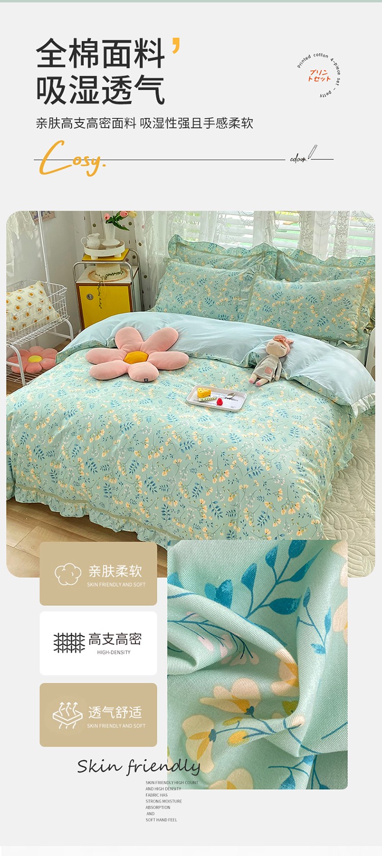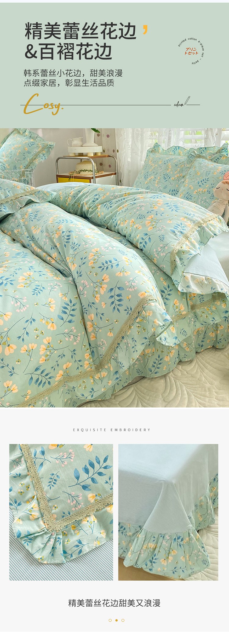 (总)艾唯希家纺 2025新款全棉双层花边四件套纯棉小碎花10个花型-花边系列,春意萌,恋之晴空,奶芙蓉-绿,奶芙蓉-粉,林间物语-绿,林间物语-紫,花冉,花艺漫漫,梳璃,雾里花