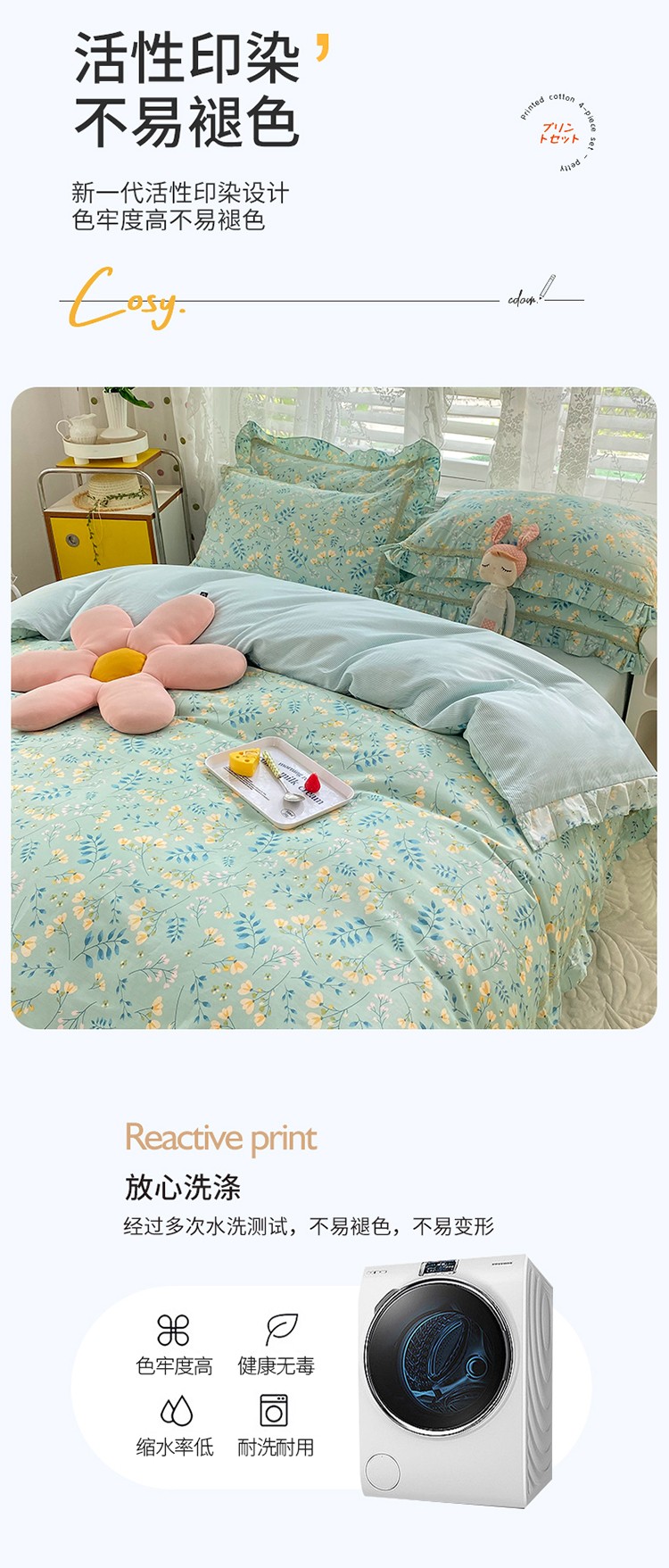 (总)艾唯希家纺 2025新款全棉A类双层纱工艺四件套纯棉,萌趣-粉紫,萌趣-蓝灰,萌趣-绿,萌趣-米,萌趣-奶茶