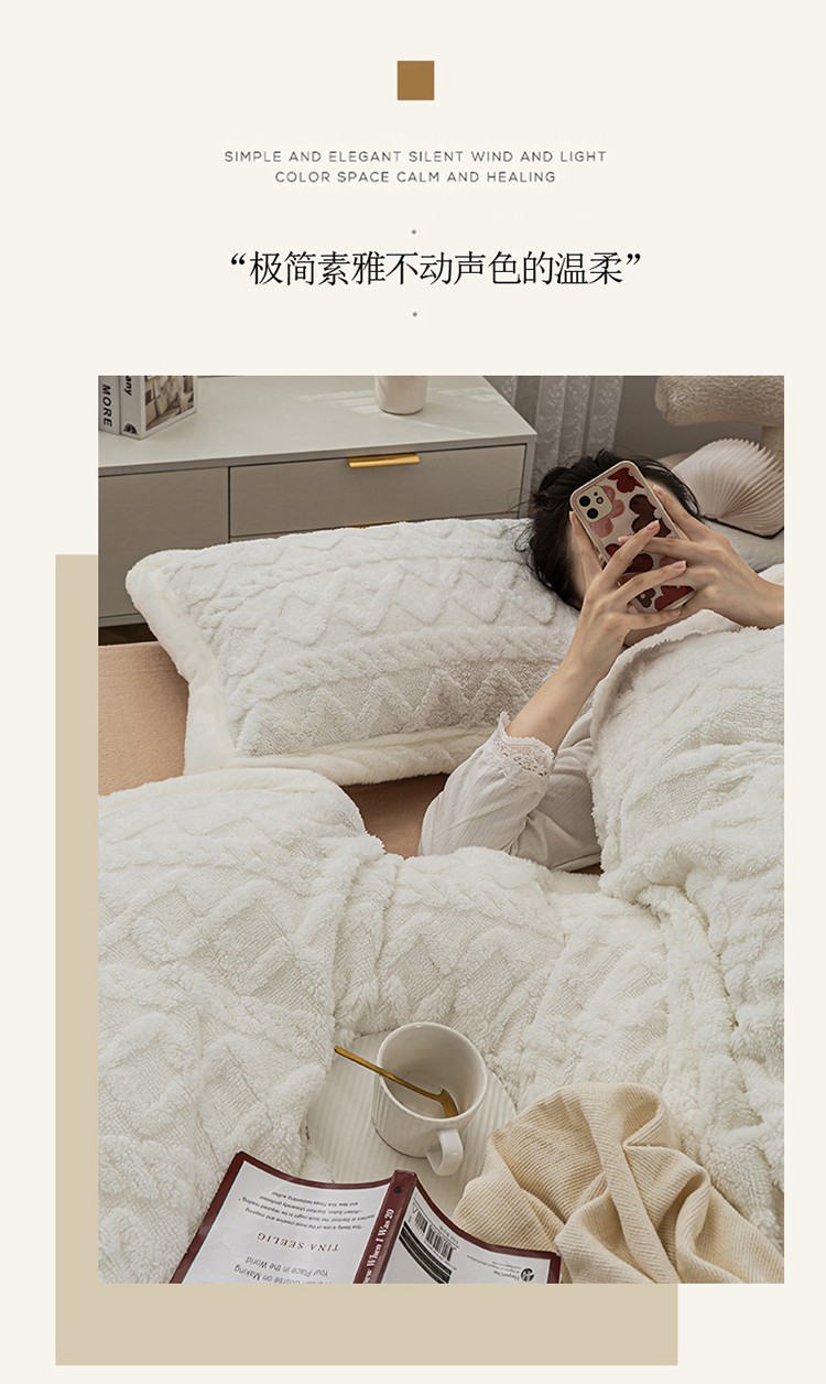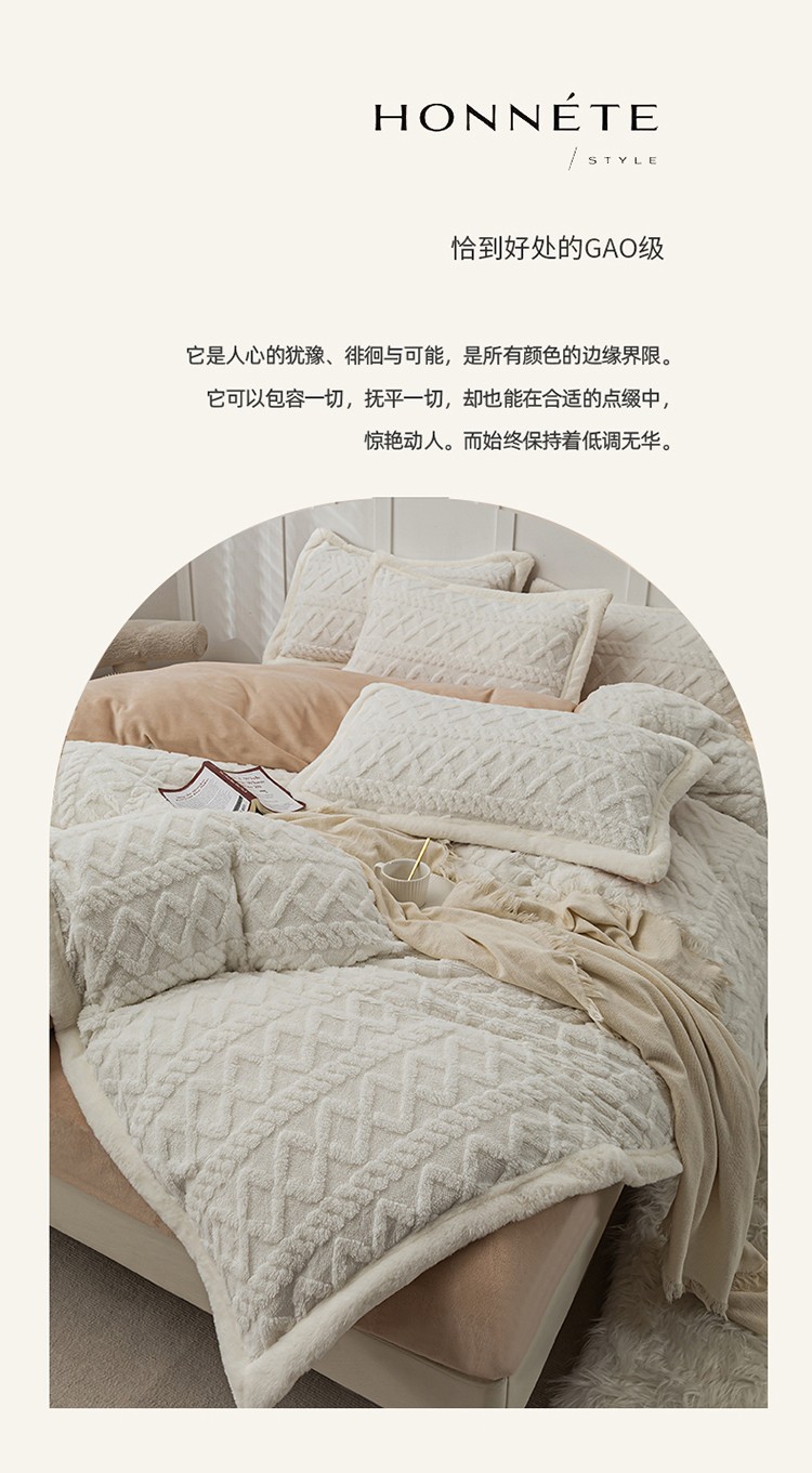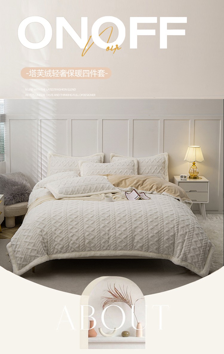 商品名称:潮邦 2025【含买家秀】塔芙绒牛奶绒轻奢保暖四件套 塔芙白