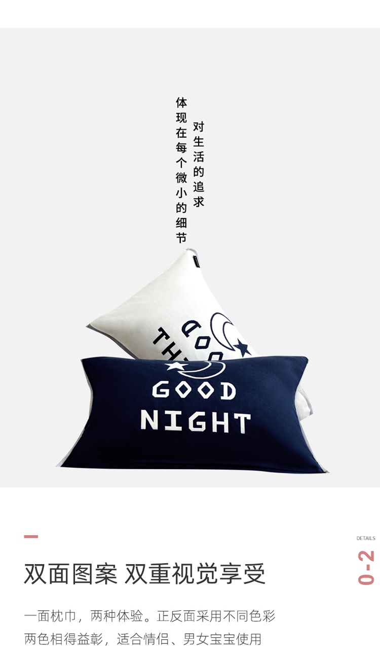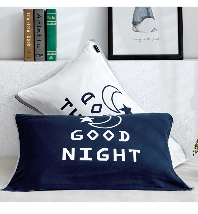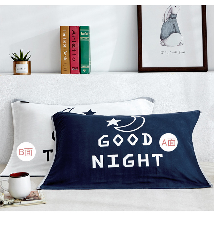 • 91家纺网 家纺一手货源 找家纺 朴尔 2022新款全棉四层纱布大版花独版枕巾(一对) 晚安先生-藏青(50*80)