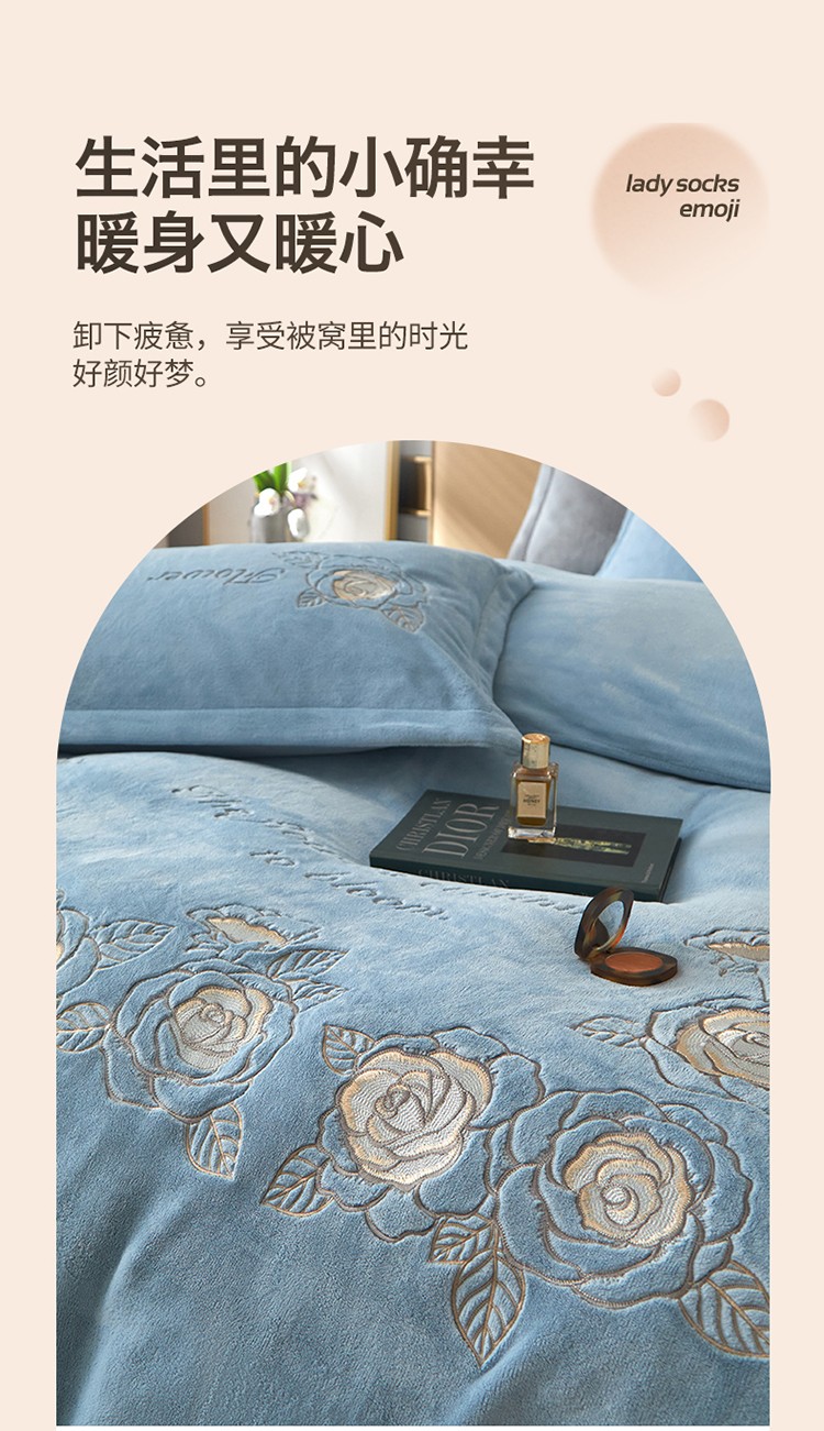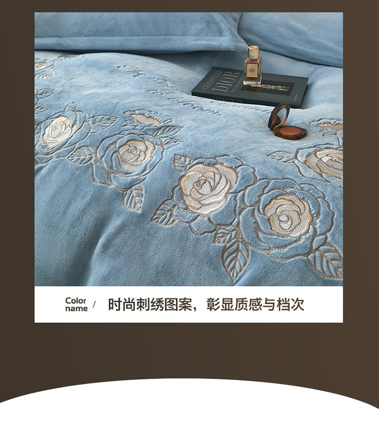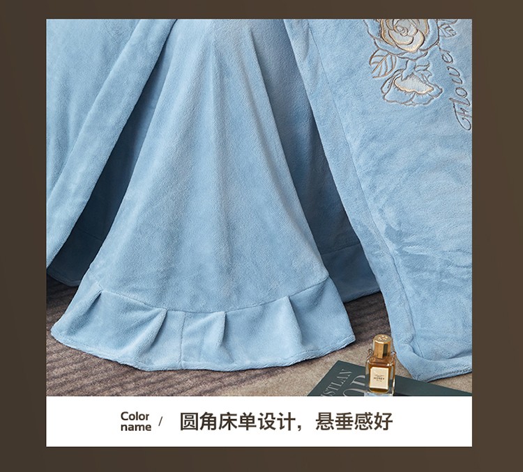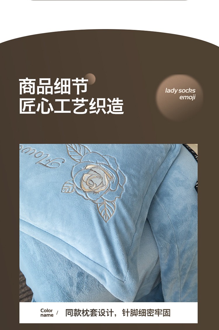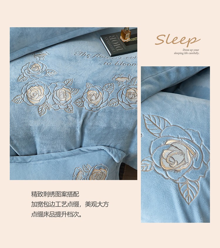 商品名称:名品优仓2022新款牛奶绒刺绣四件套-花恋 海蓝