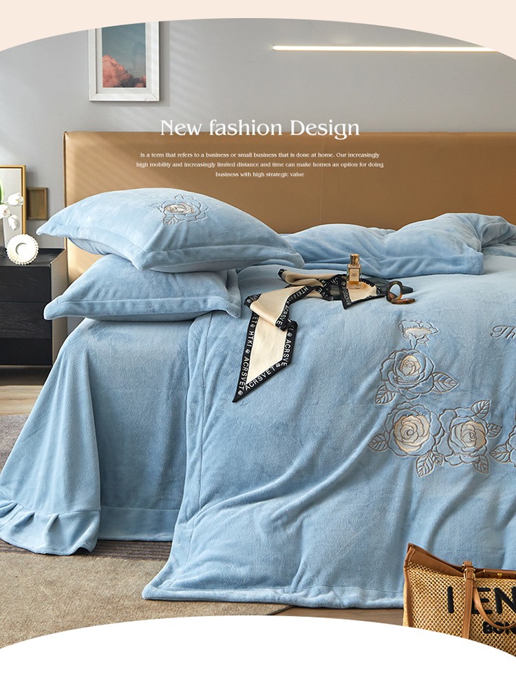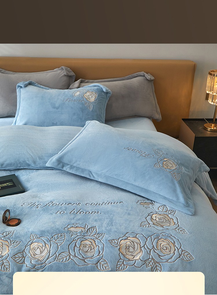 名品优仓2022新款牛奶绒刺绣四件套-花恋 海蓝