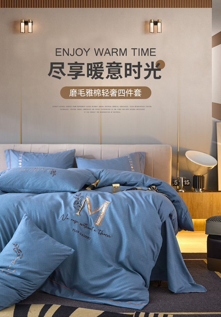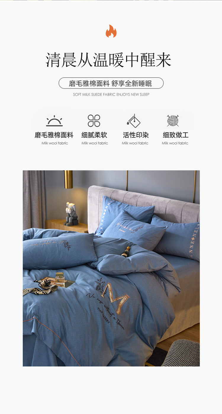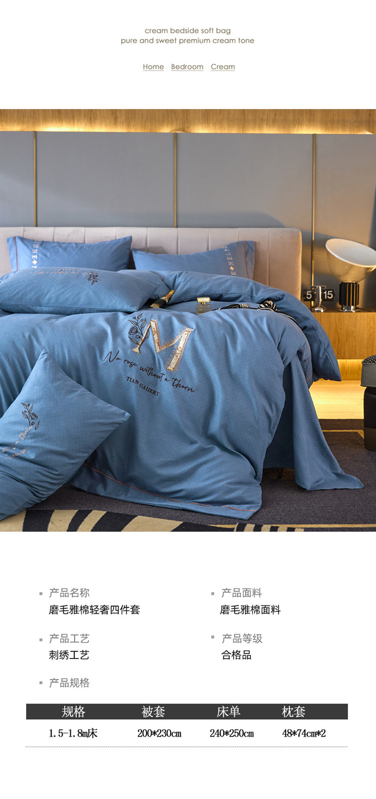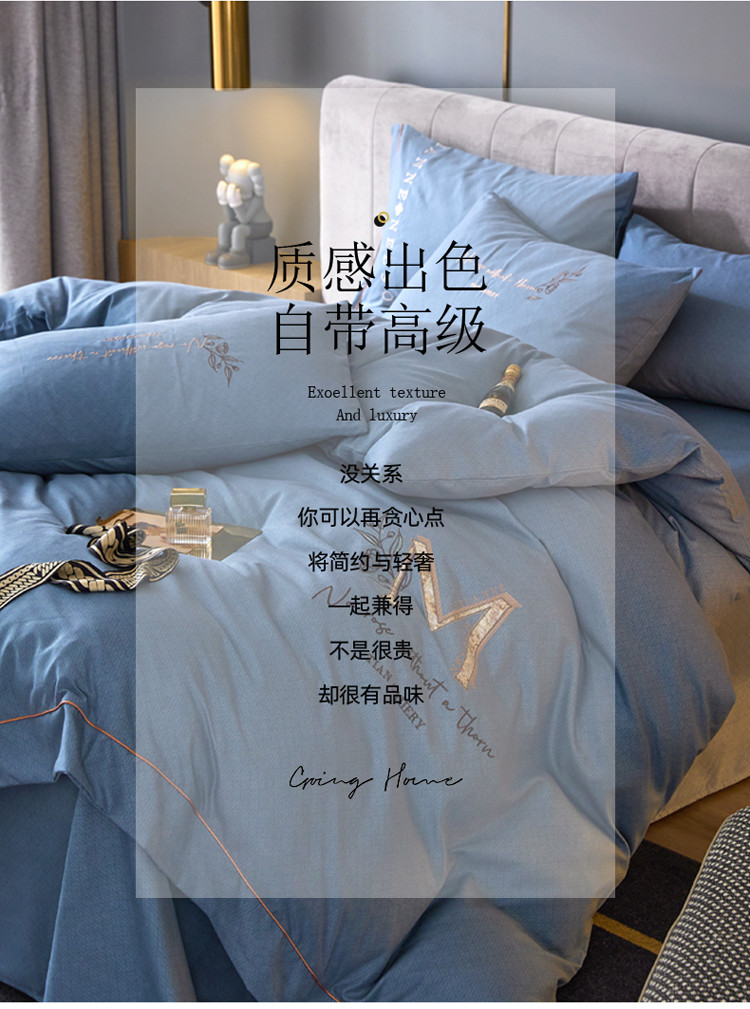 凡客家居 2022新款阳绒磨毛刺绣诺伊系列四件套 诺伊-蓝