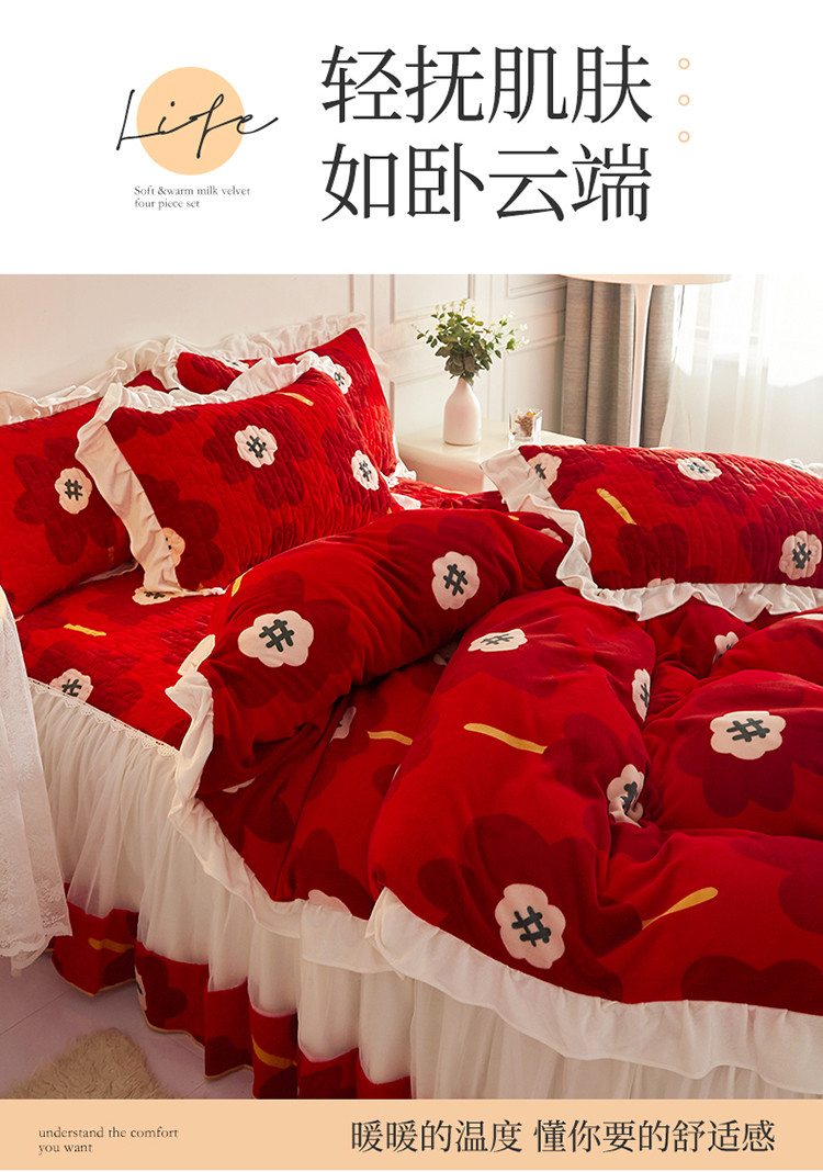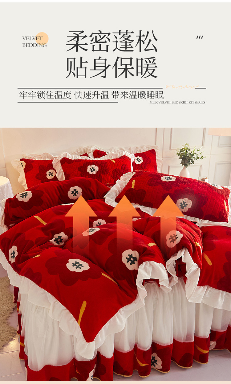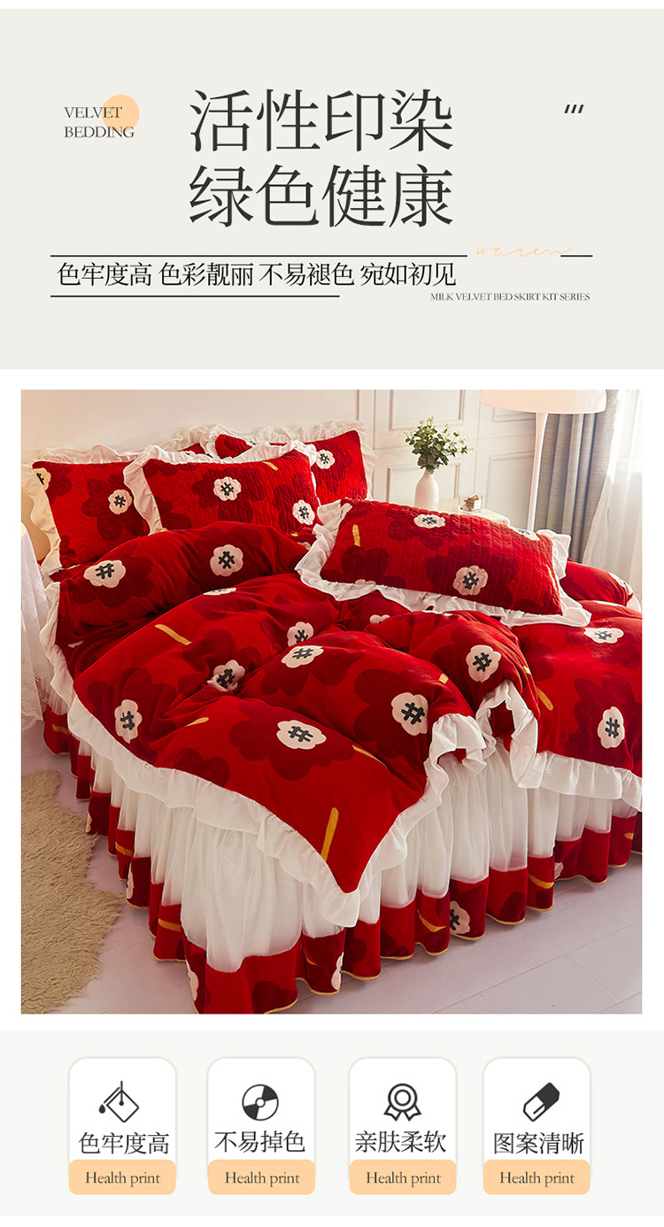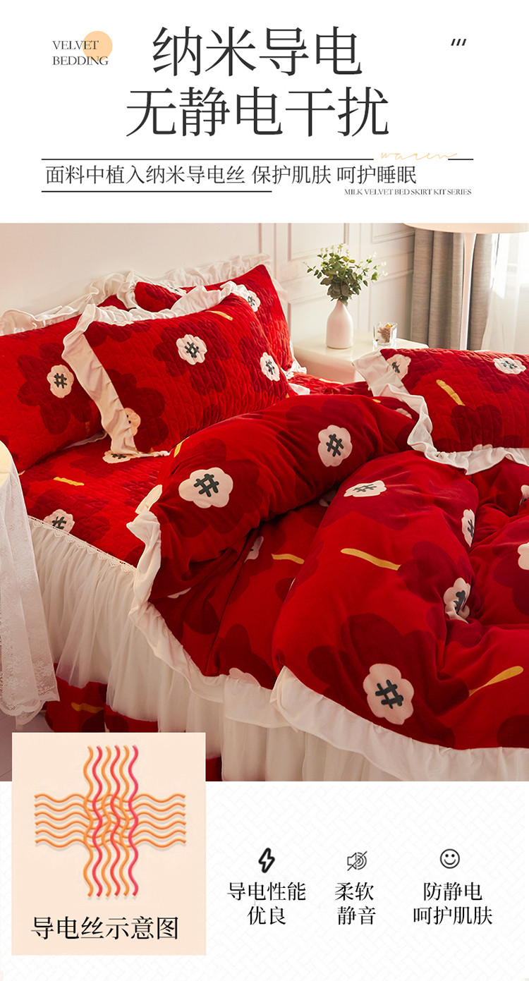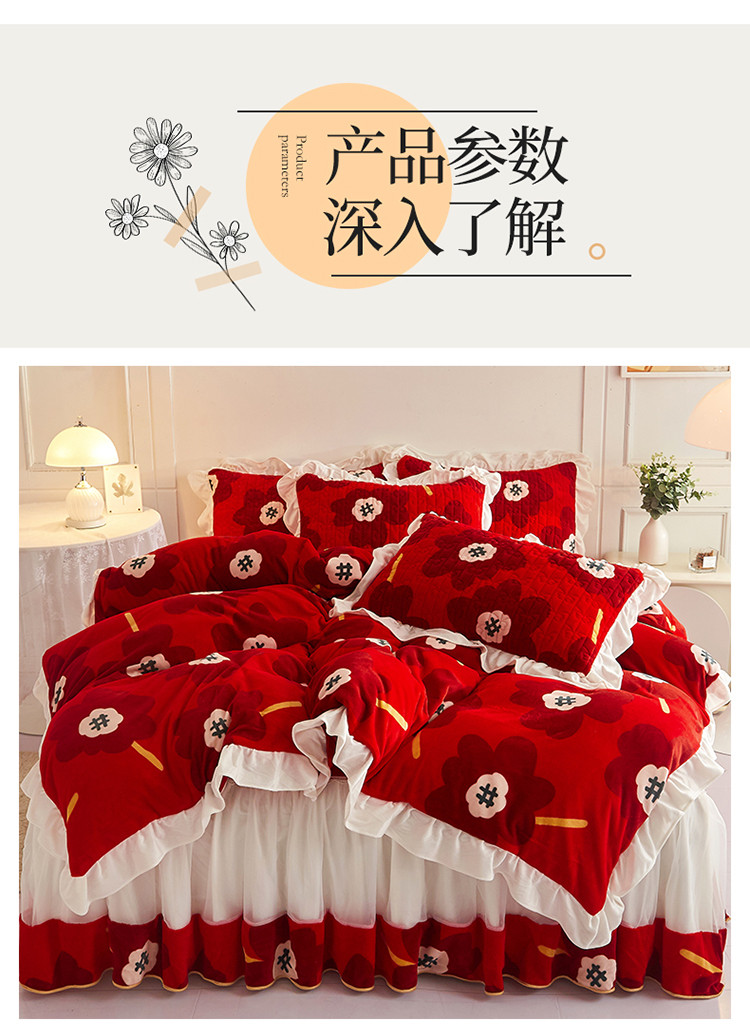 (总)宜凡家纺 2025新款婴儿绒压花全夹棉床裙四件套,韵雅-中国红,韵雅-黑天鹅