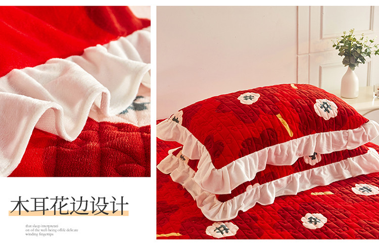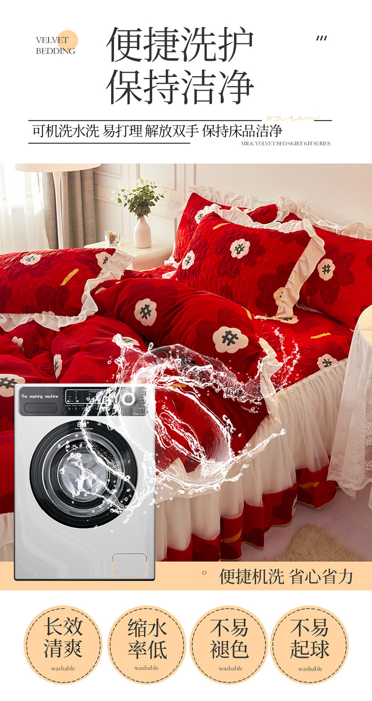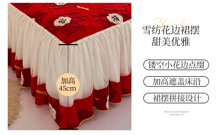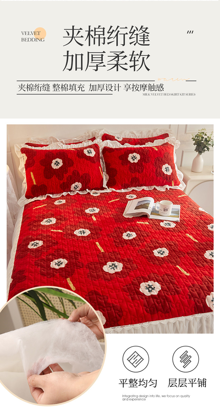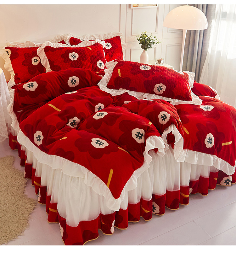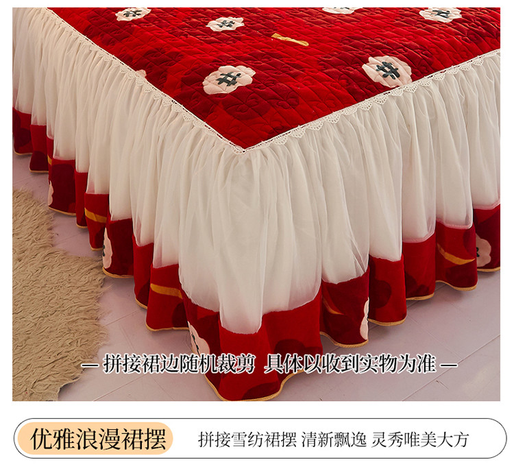 (总)宜凡家纺 2025新款婴儿绒压花全夹棉床裙四件套,韵雅-中国红,韵雅-黑天鹅