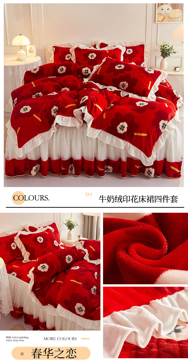 • 91家纺网 家纺一手货源 找家纺 宜凡2022新款A类牛奶绒印花床裙四件套 春华之恋