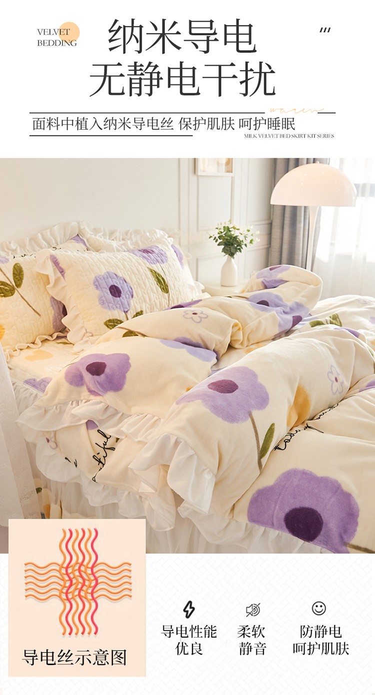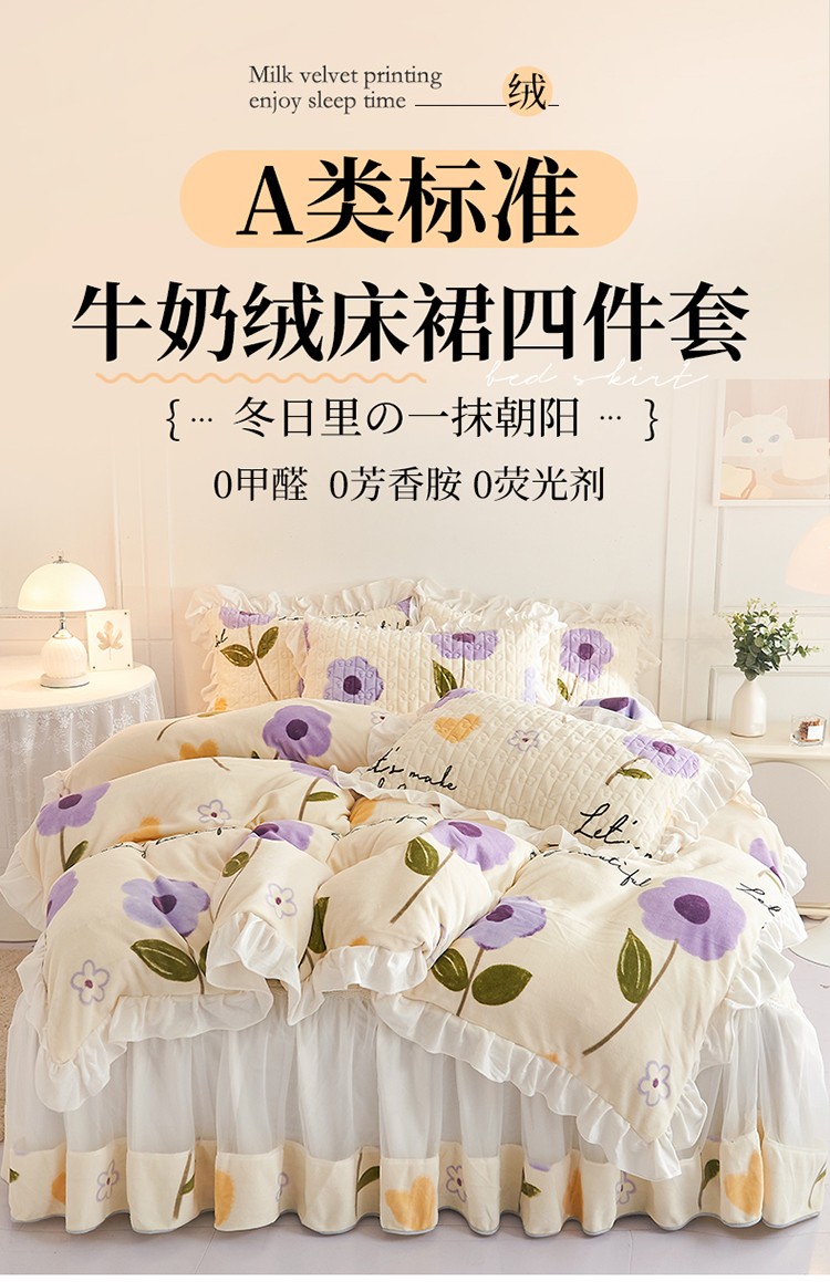 • 91家纺网 家纺一手货源 找家纺 宜凡2022新款A类牛奶绒印花床裙四件套 连理花枝