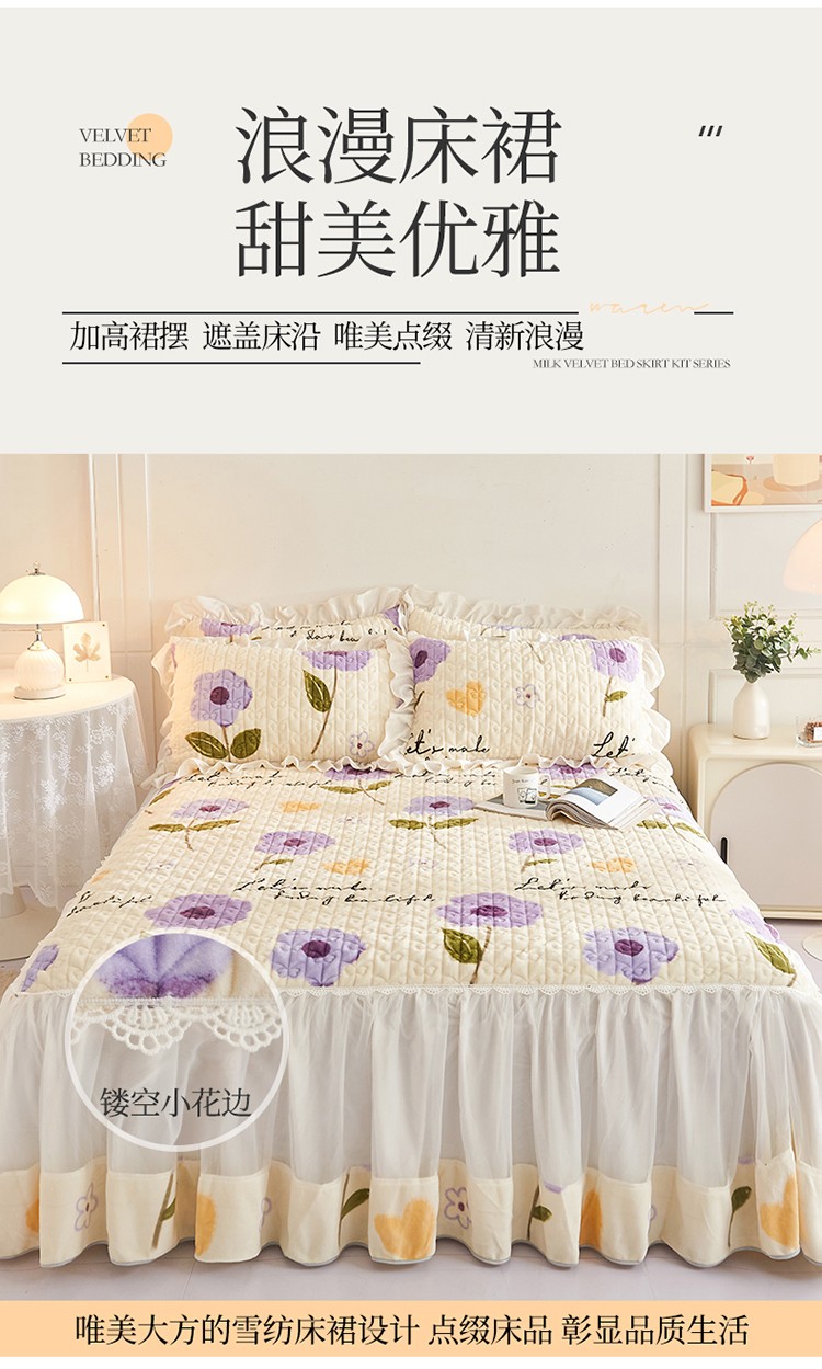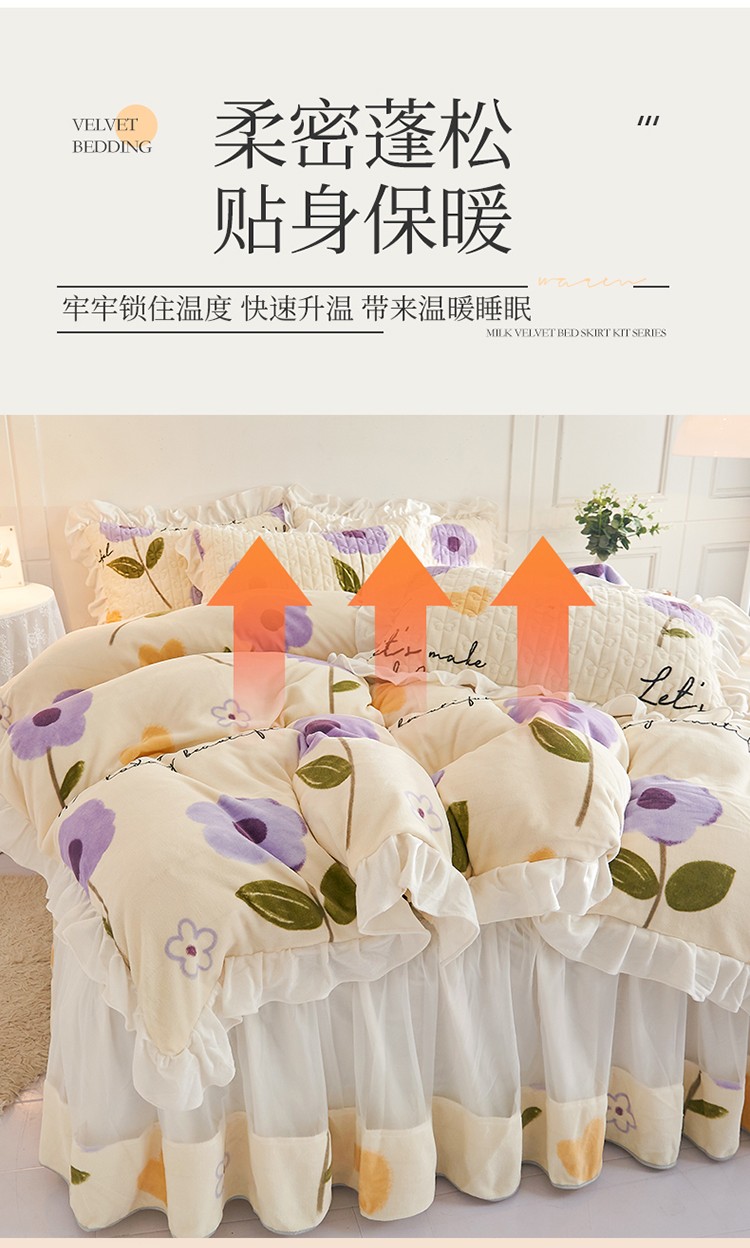(总)宜凡家纺 2025新款兔绒提花牛奶绒夹棉床裙四件套,爱心 少女粉,爱心 粉紫,爱心 驼色,蝶舞 大红,蝶舞 米色,蝶舞 浅紫,蝶舞 玉色,简爱 苍青,简爱 豆沙紫,简爱 玉色,樱桃 苍青,樱桃 豆沙紫,樱桃 奶油白