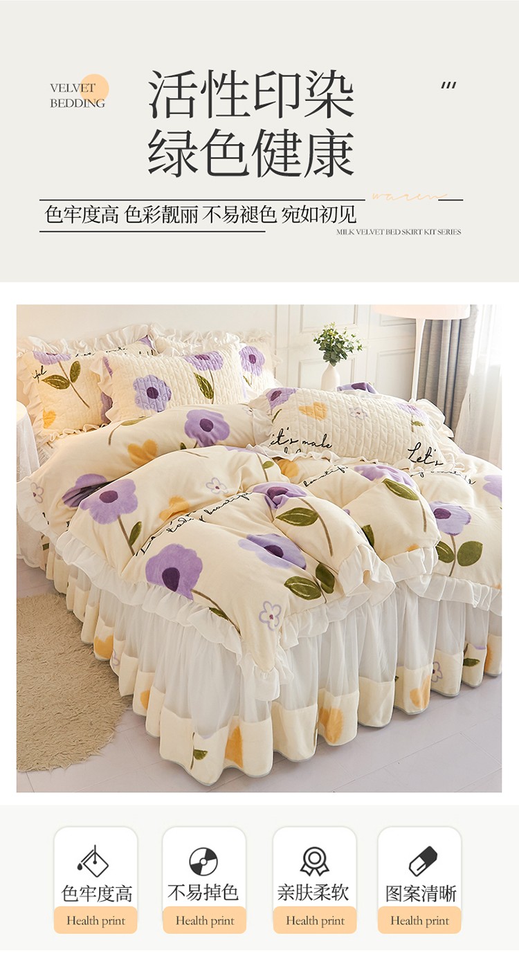 宜凡2022新款A类牛奶绒印花床裙四件套 连理花枝