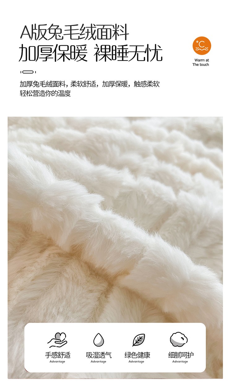 商品名称:满座 2025新款獭兔毛四件套 兔兔绒牛奶绒四件套奶白咖