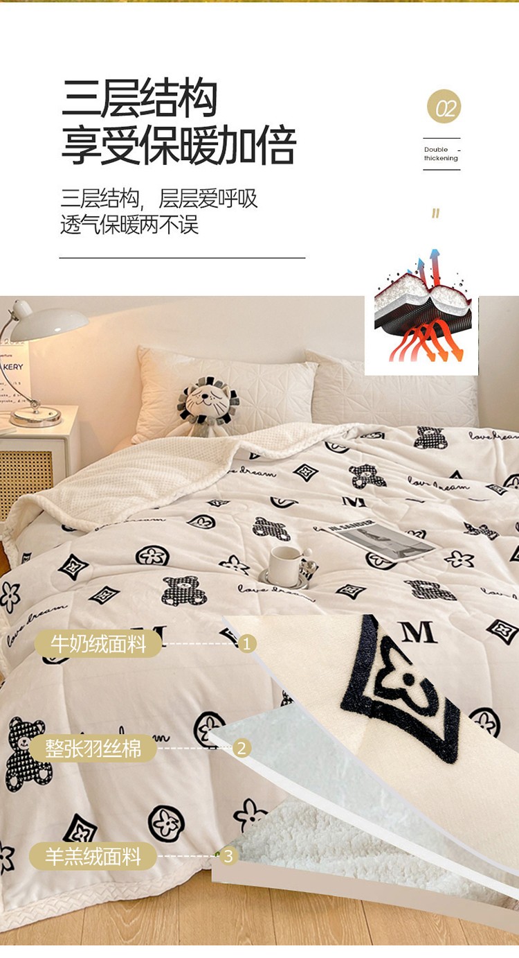 (总)慕尚 2022爆款牛奶绒贝贝绒夹棉3层加厚毛毯