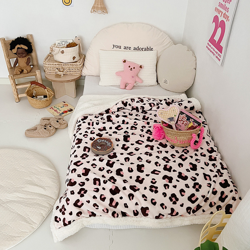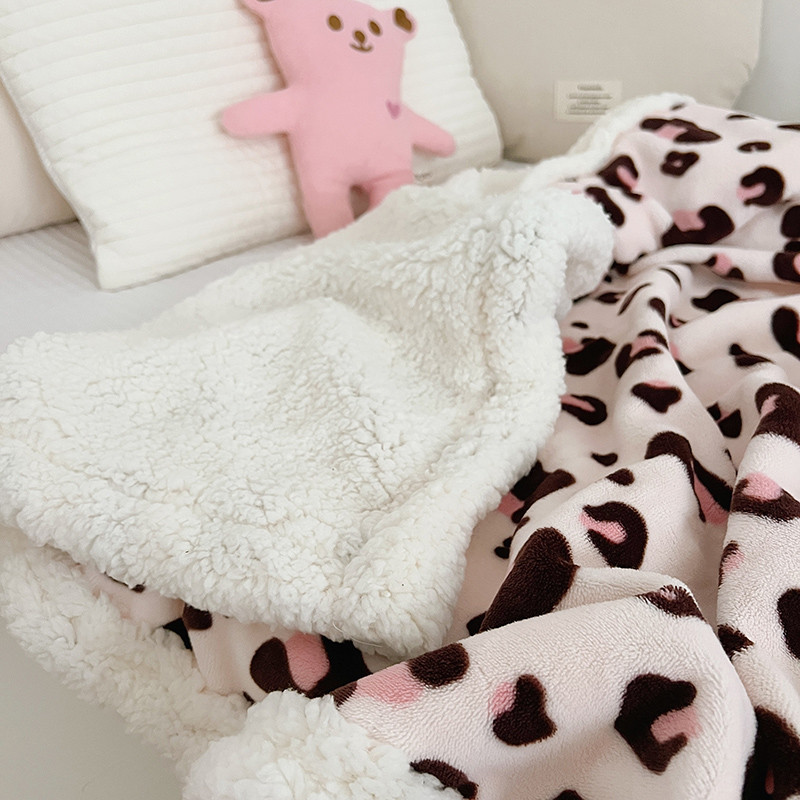航途席业 2023新款软绵绵牛奶绒羊羔绒毛毯 粉豹纹