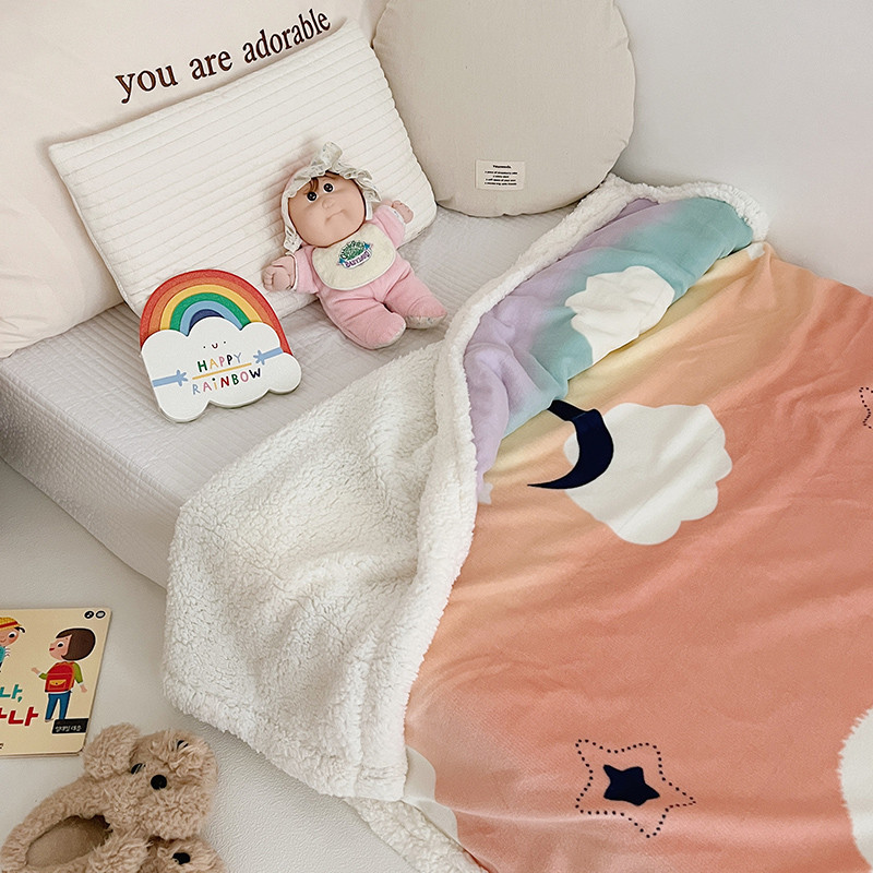 航途席业 2023新款软绵绵牛奶绒羊羔绒毛毯 星月彩虹