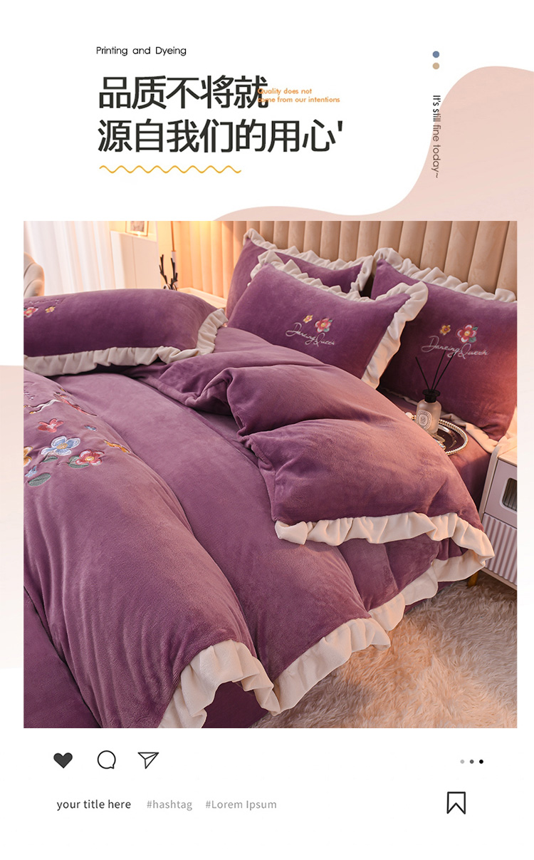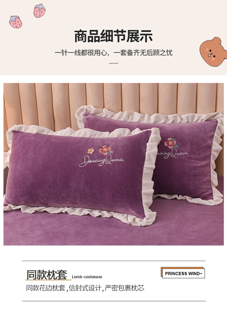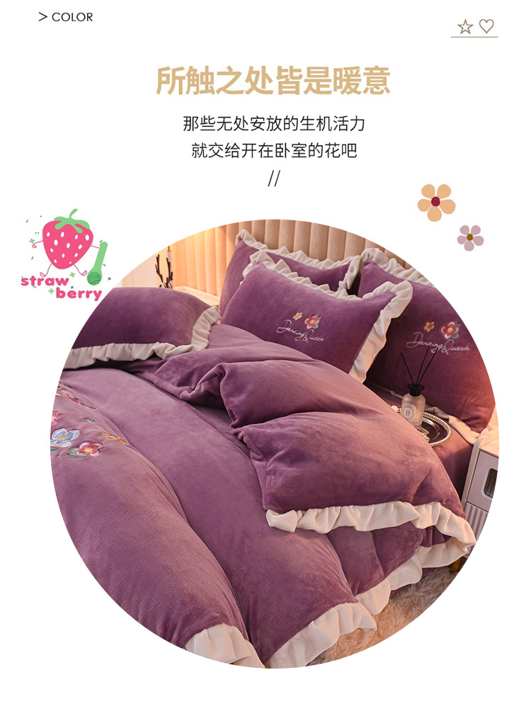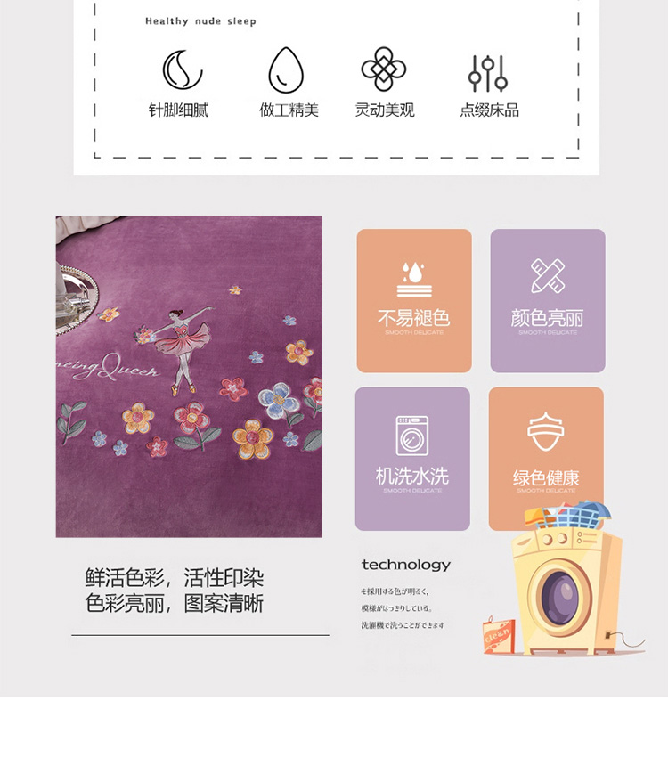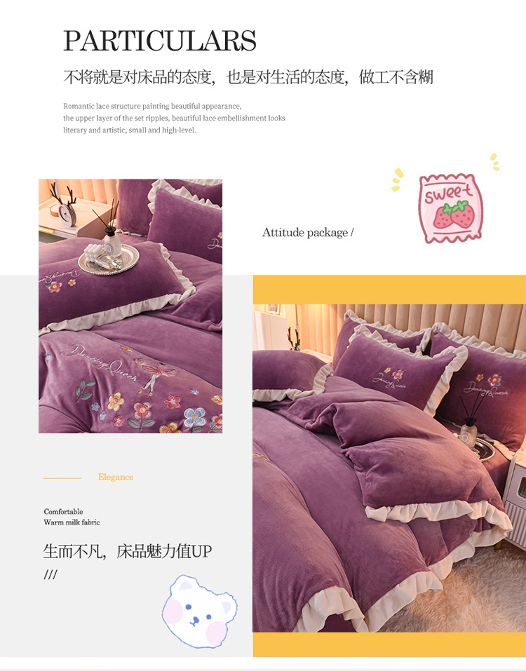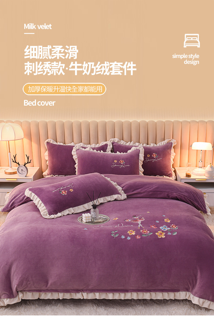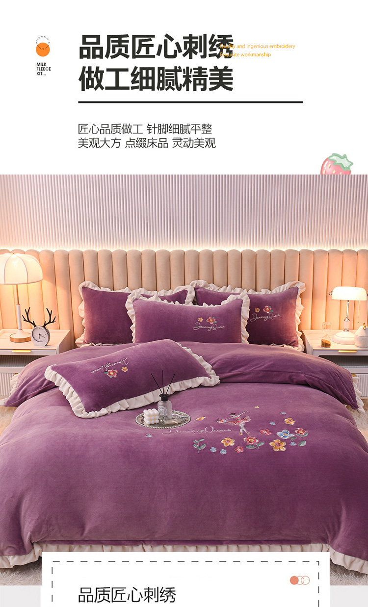 商品名称:芃成 2022新款加厚保暖牛奶绒绣花四件套 芭蕾女孩 玫瑰紫