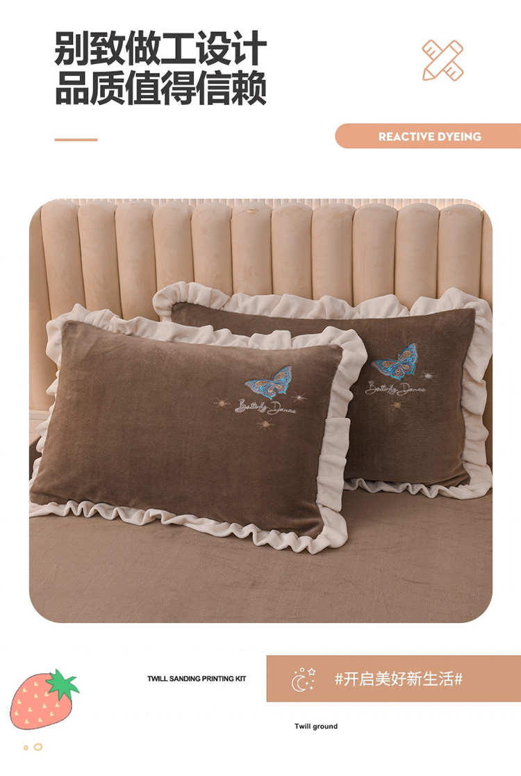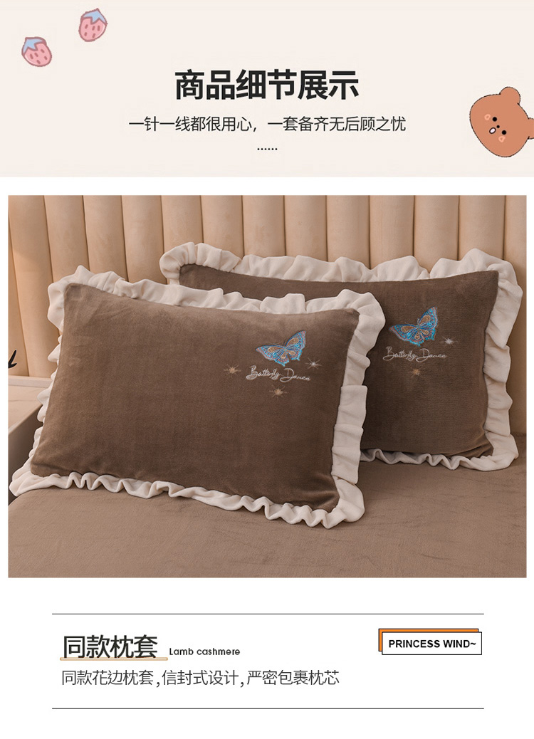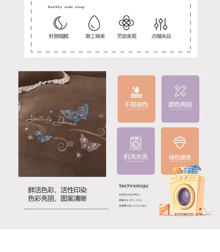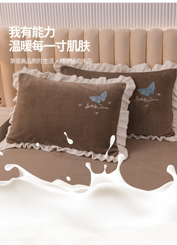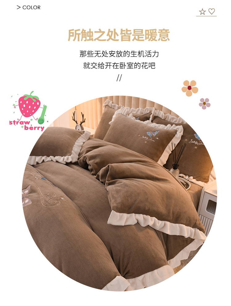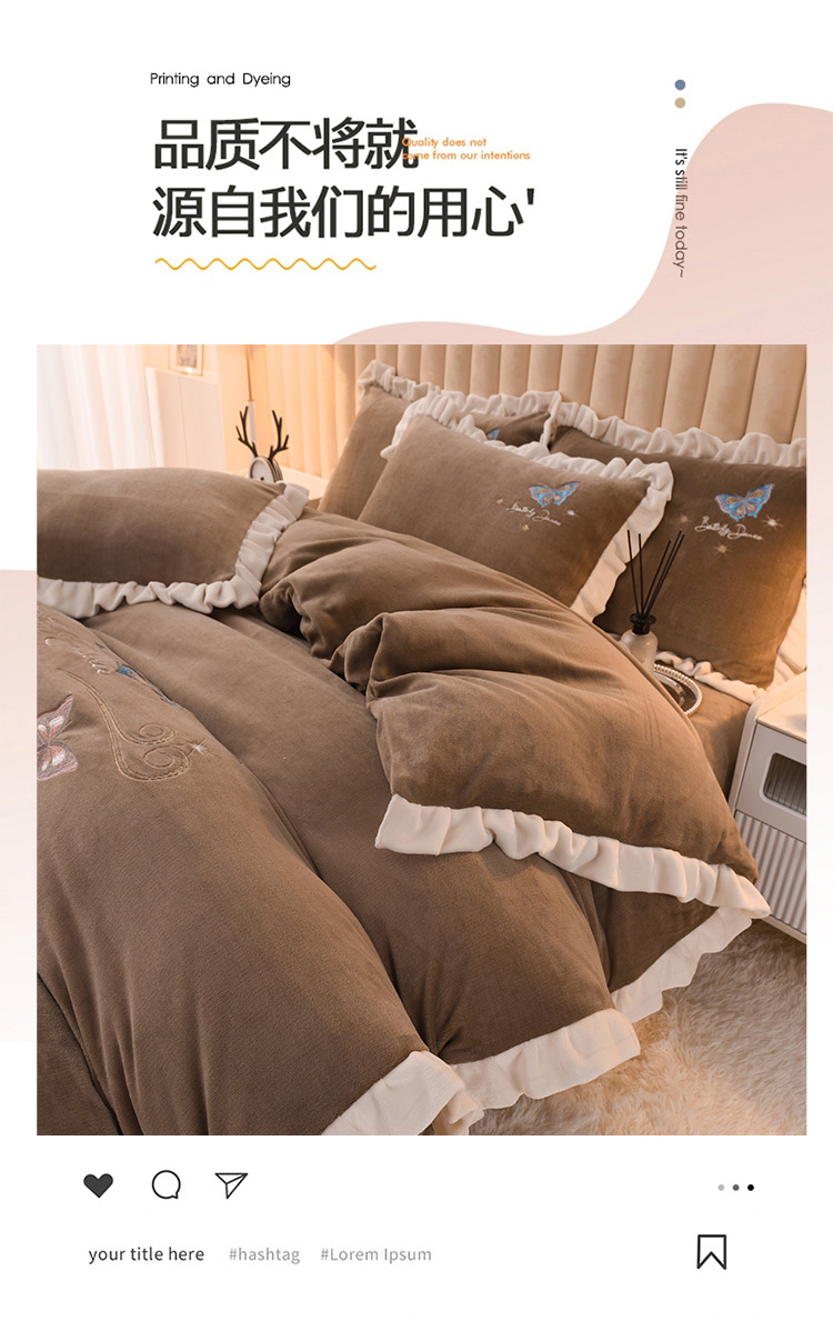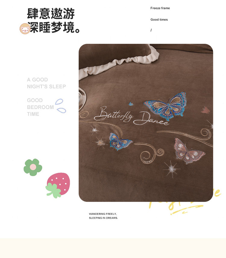 商品名称:芃成 2022新款加厚保暖牛奶绒绣花四件套 蝶舞 奶咖
