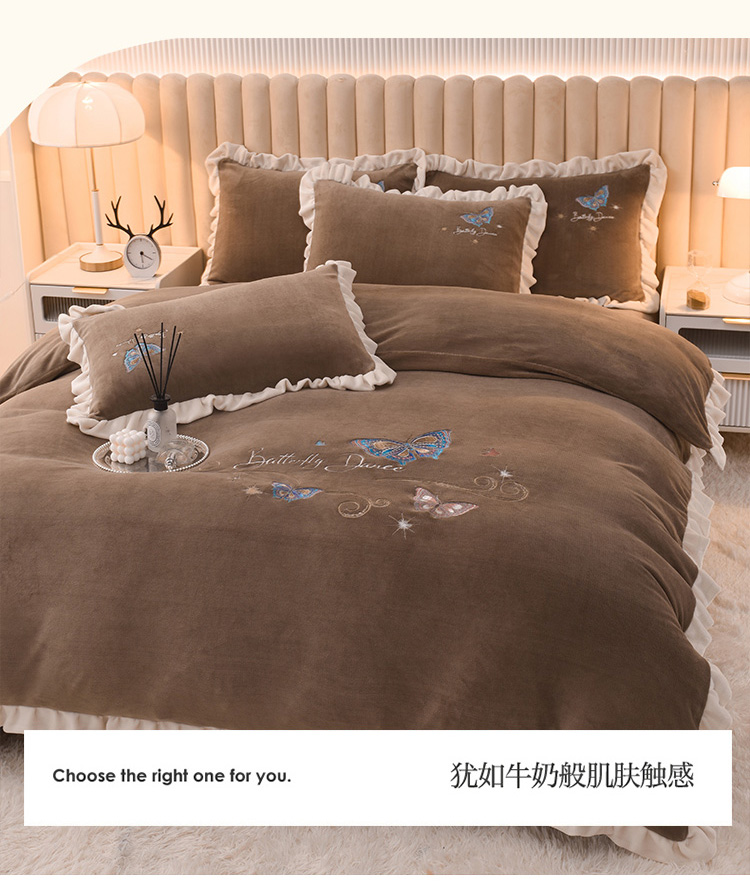 芃成 2022新款加厚保暖牛奶绒绣花四件套 蝶舞 奶咖