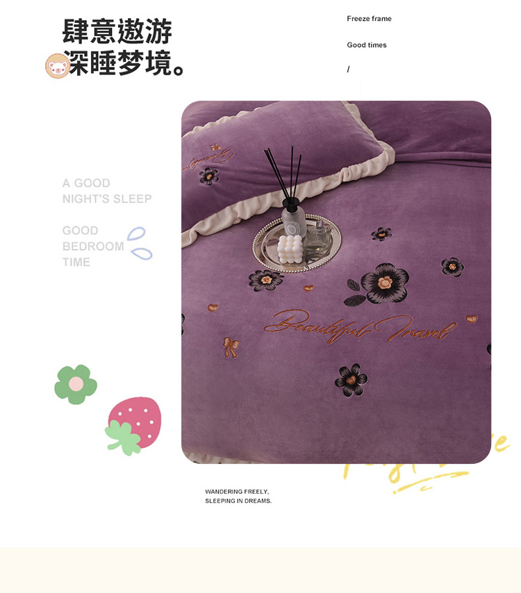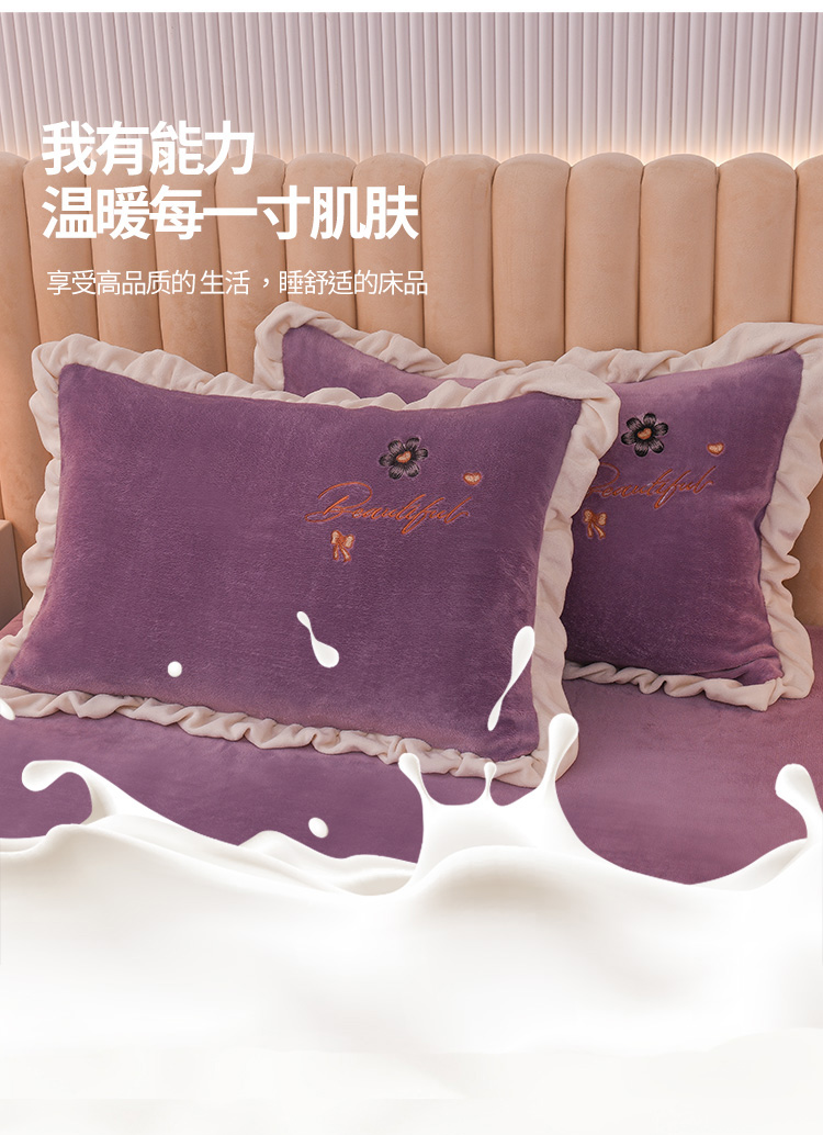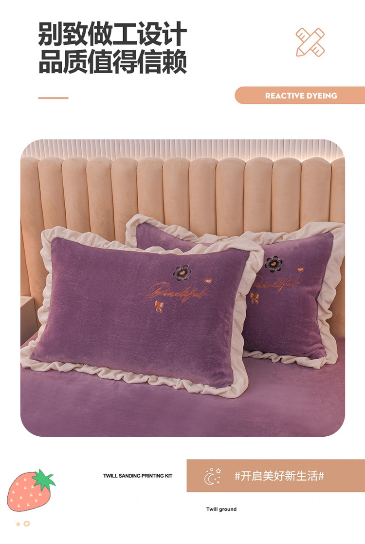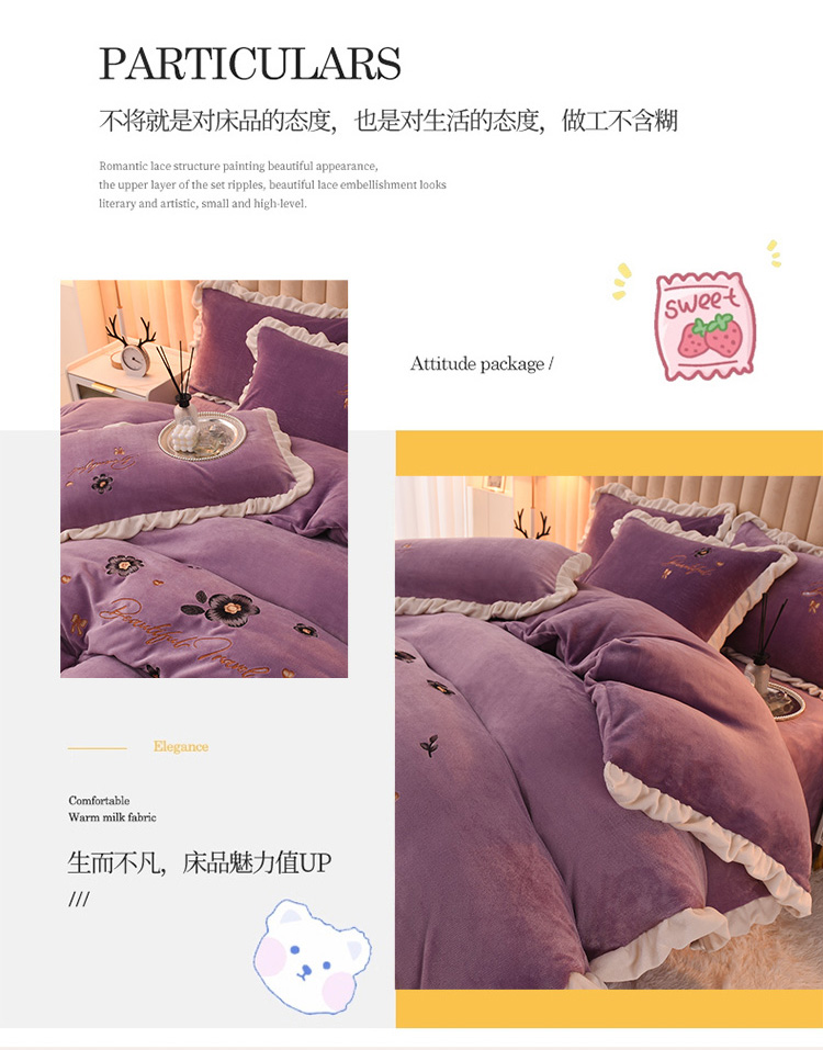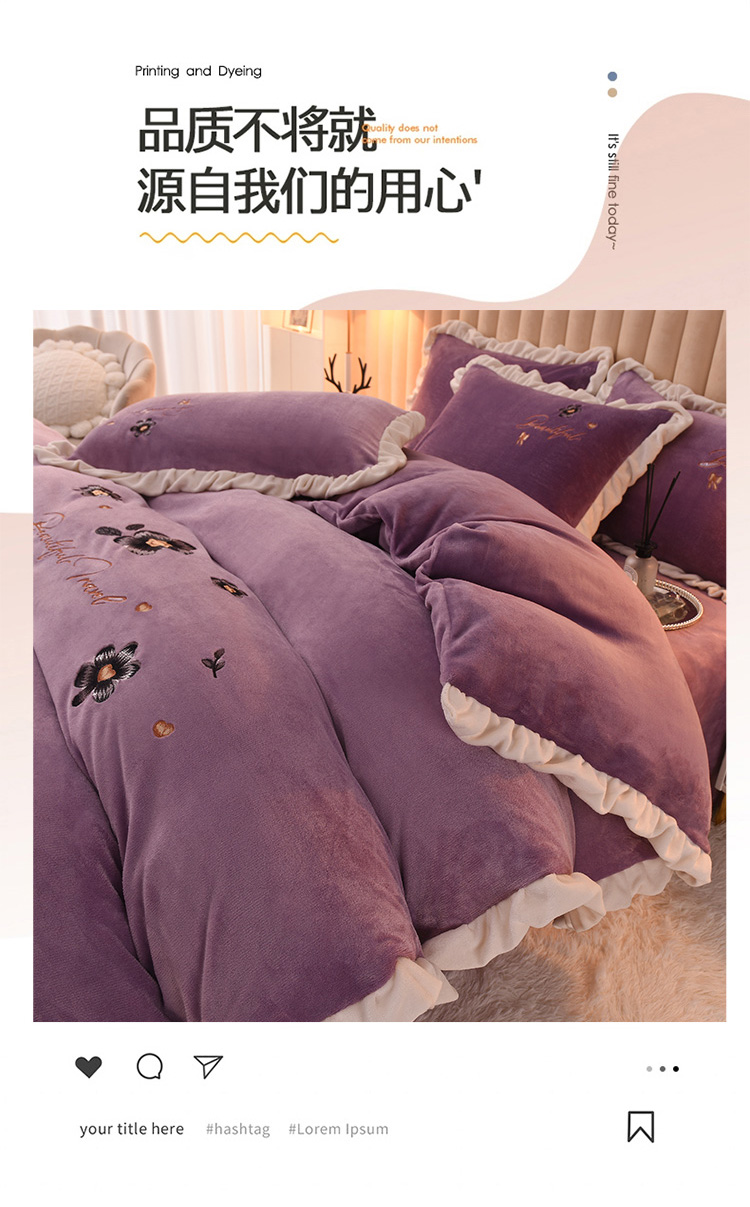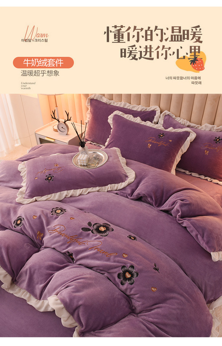 芃成 2022新款加厚保暖牛奶绒绣花四件套 花漾 玫瑰紫