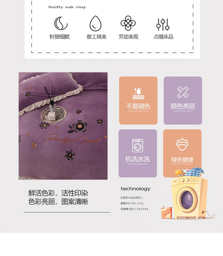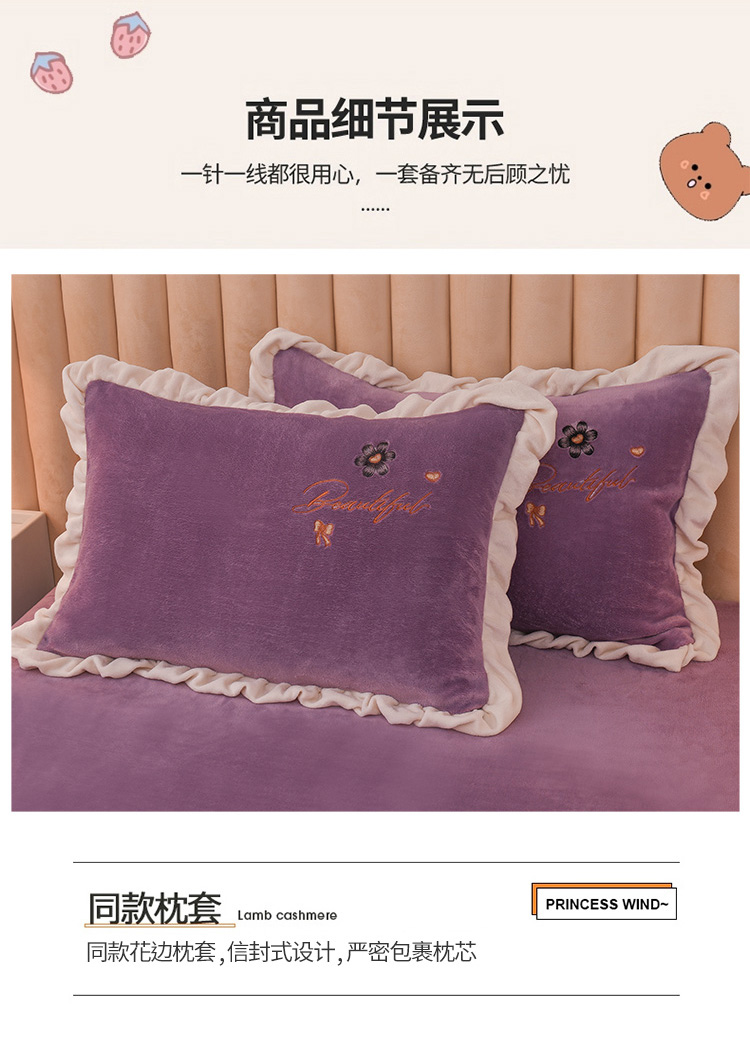 商品名称:芃成 2022新款加厚保暖牛奶绒绣花四件套 花漾 玫瑰紫