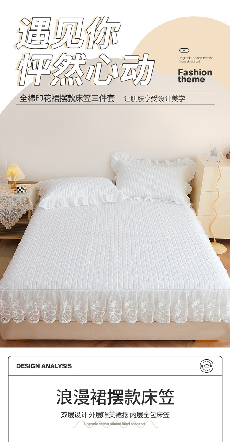 (总)宜凡家纺 2025新款全棉数码印花床裙三件套系列一,静若幽兰,浮云织梦,梦幻花园,陌上花开
