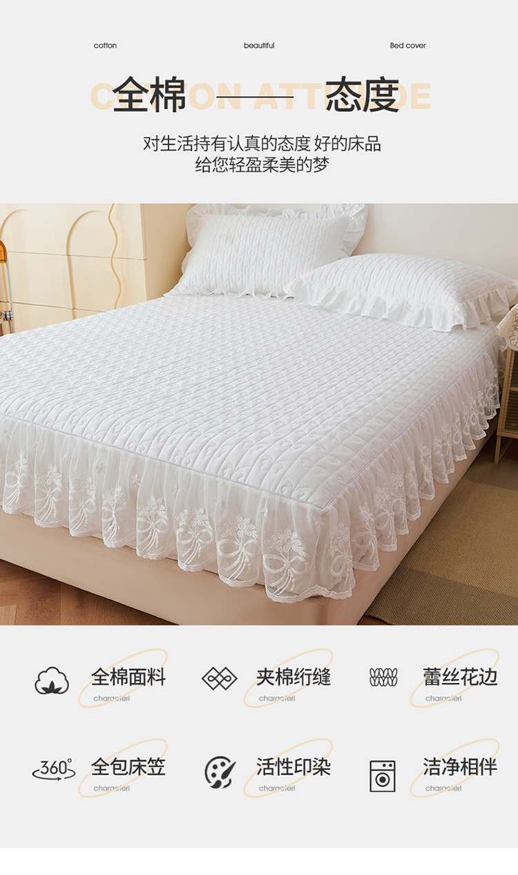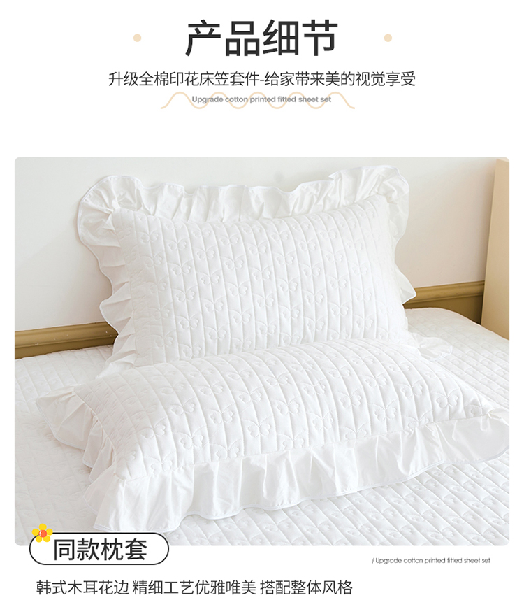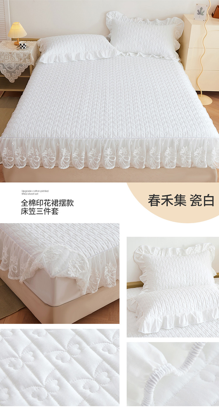 宜凡 2023新款四季款夹棉小清新床笠三件套 春禾集 瓷白
