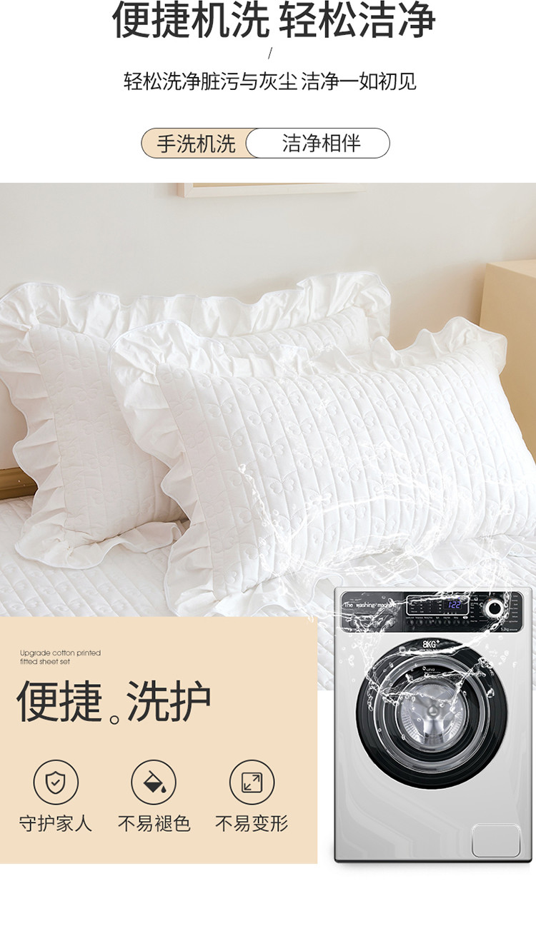 商品名称:宜凡 2023新款四季款夹棉小清新床笠三件套 春禾集 瓷白