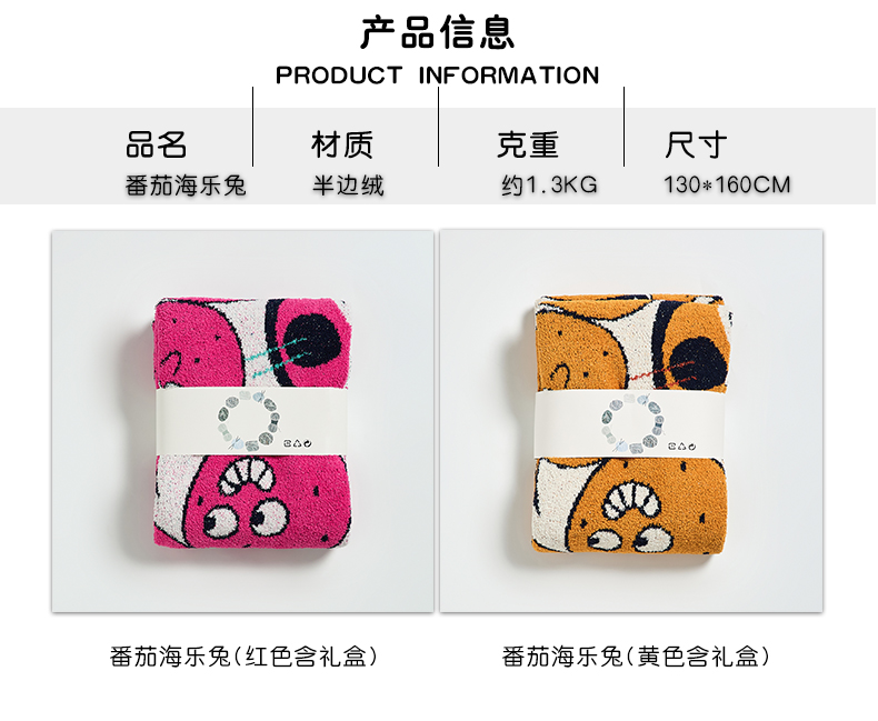 商品名称:暖绵绵 新款半边绒毛毯-番茄海乐兔 红色